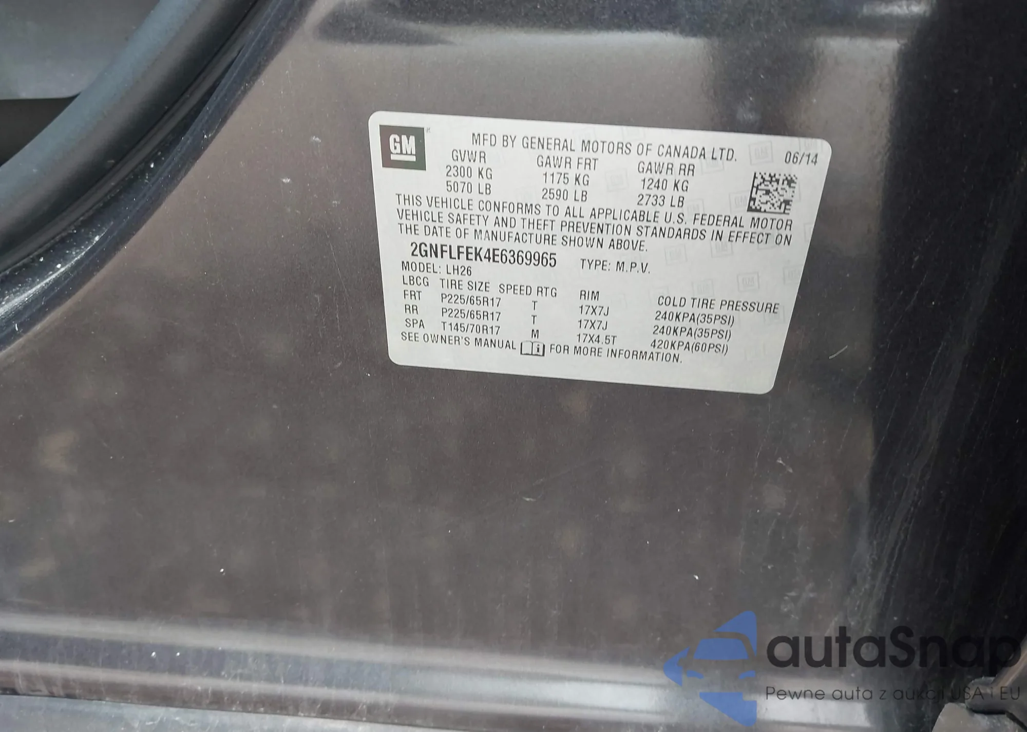 LOT: 42118058 VIN: 2GNFLFEK4E6369965