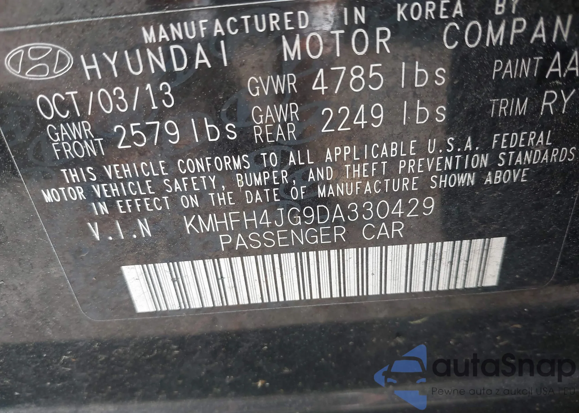 LOT: 42349479 VIN: KMHGC4DH5CU202757