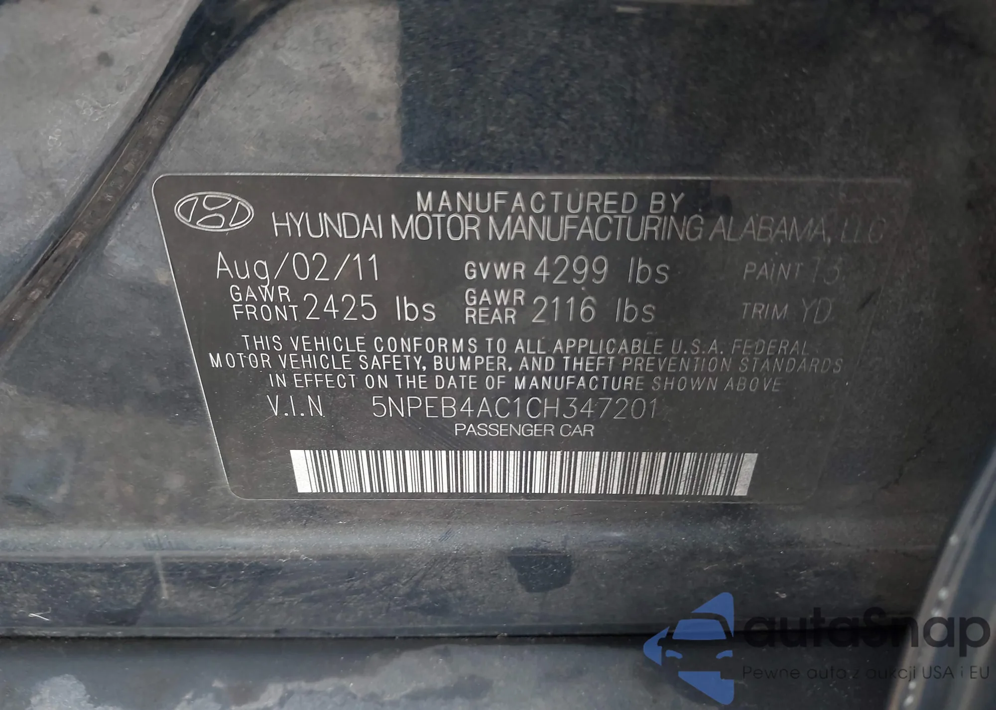 • VIN 5NPEB4AC1CH347201