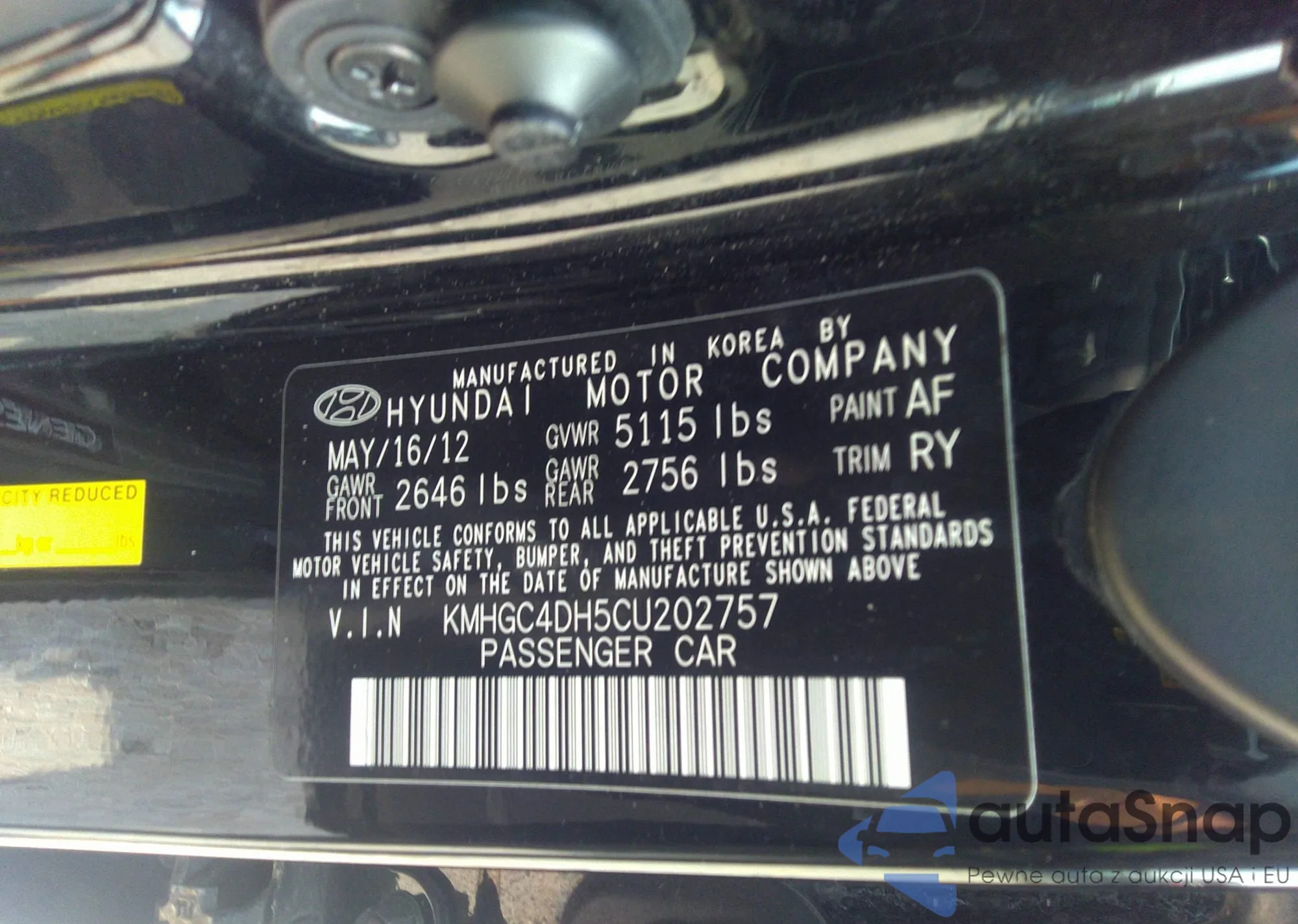 • VIN KMHGC4DH5CU202757