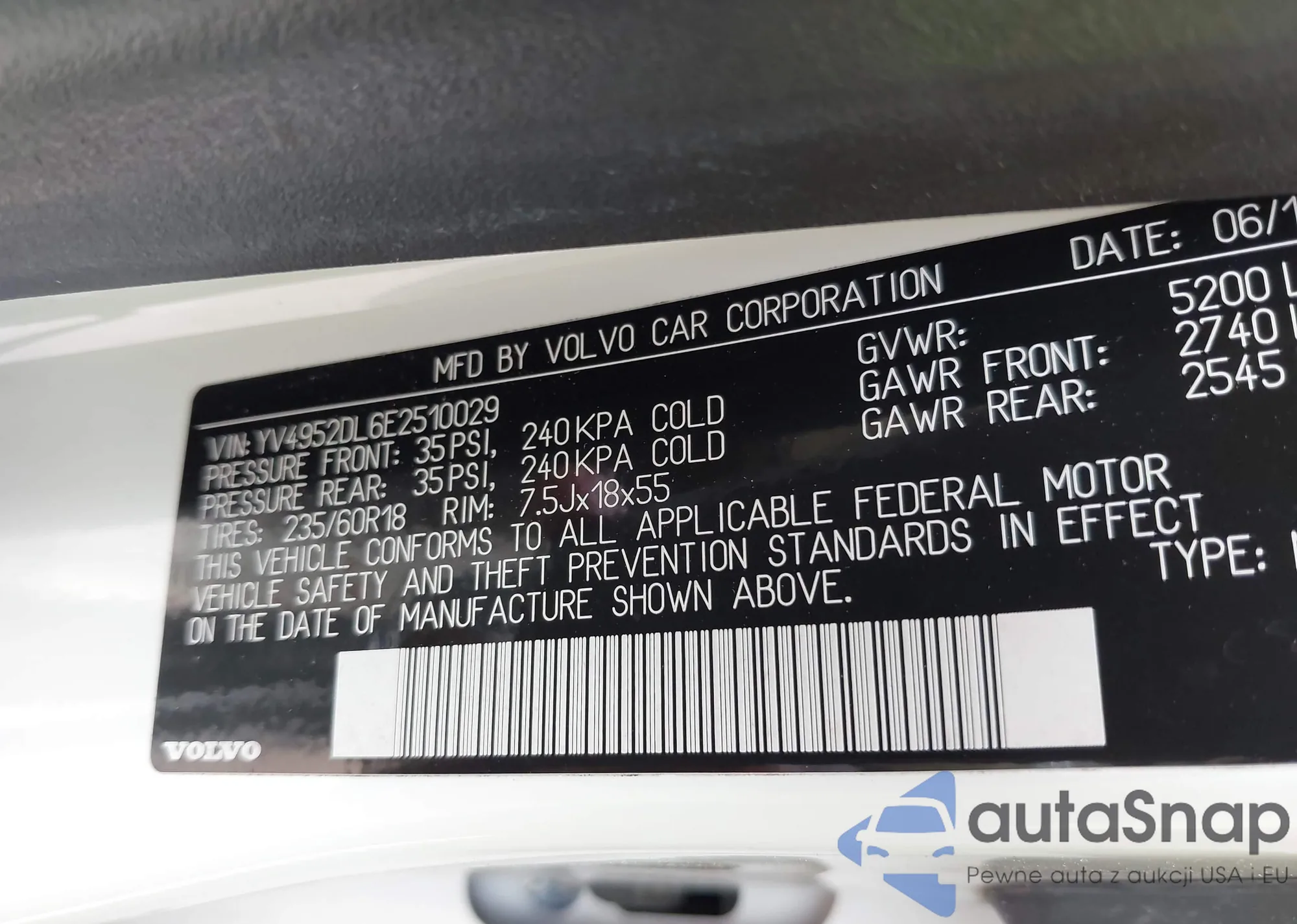 LOT: 42354478 VIN: YV4952DL6E2510029