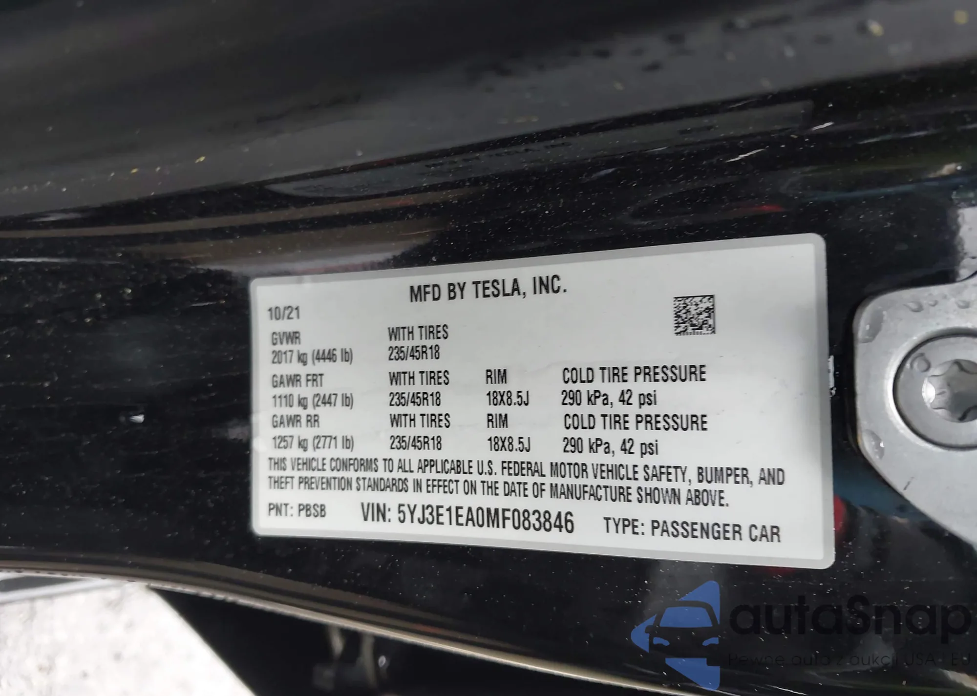 • VIN 5YJ3E1EA0MF083846
