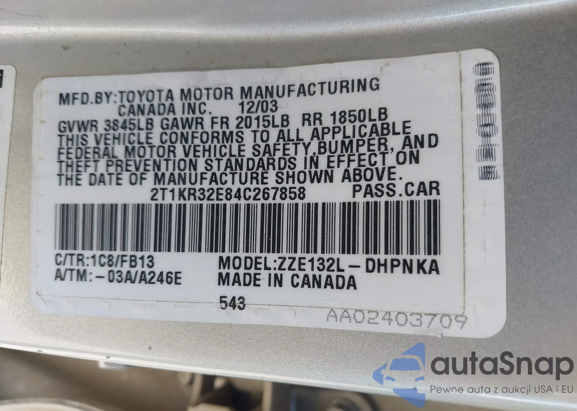 • VIN 2T1KR32E84C267858