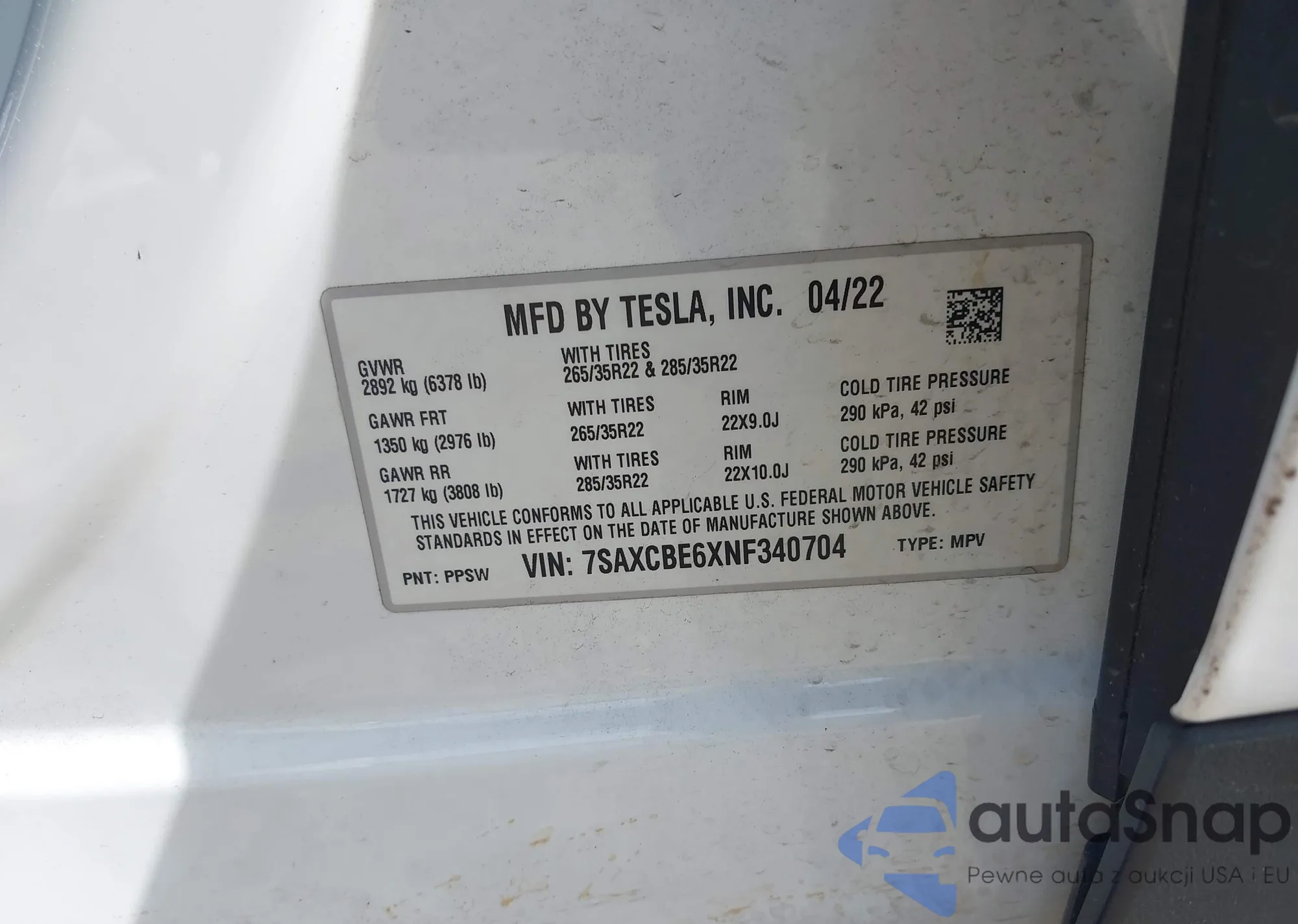 • VIN 7SAXCBE6XNF340704