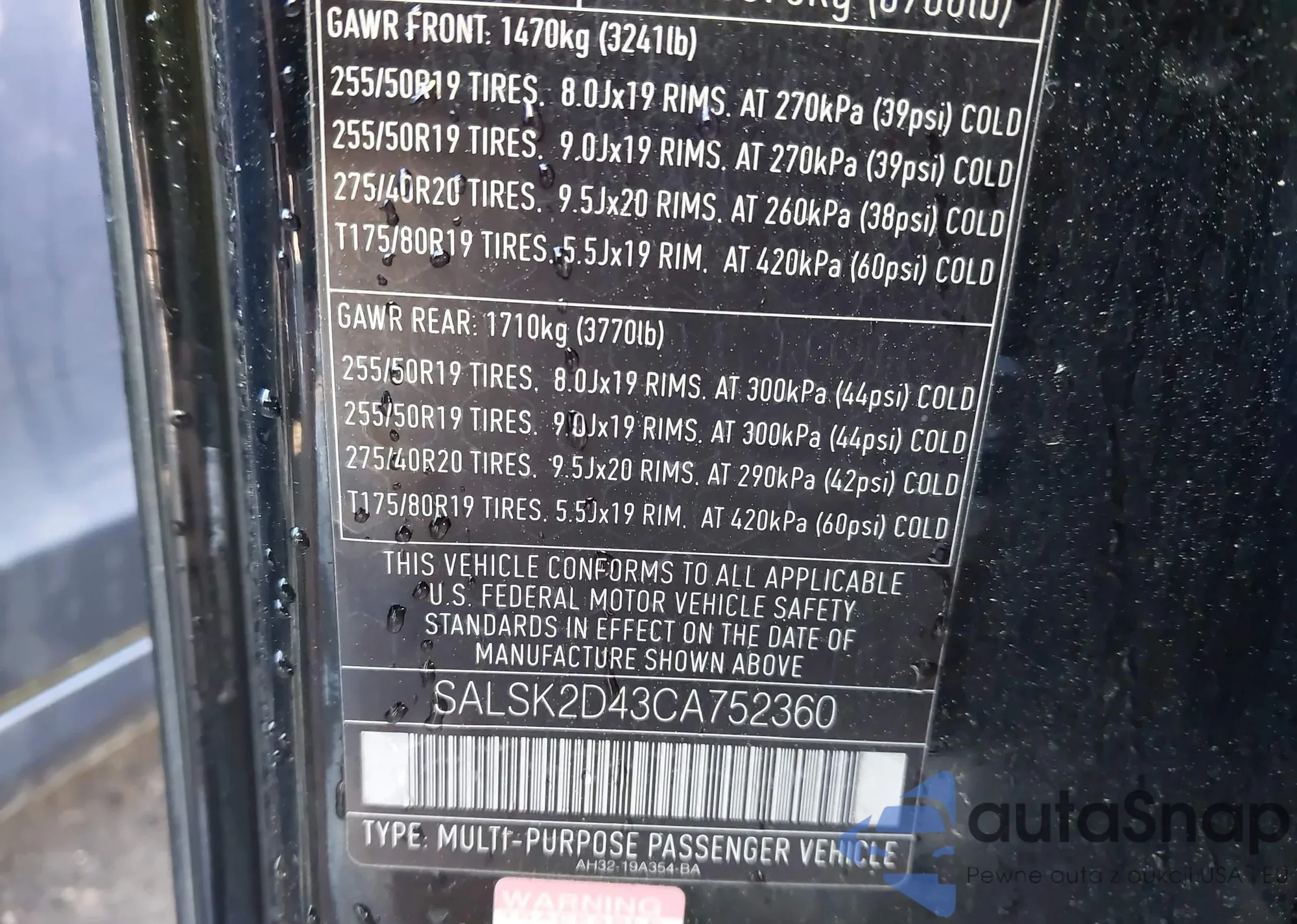 • VIN SALSK2D43CA752360