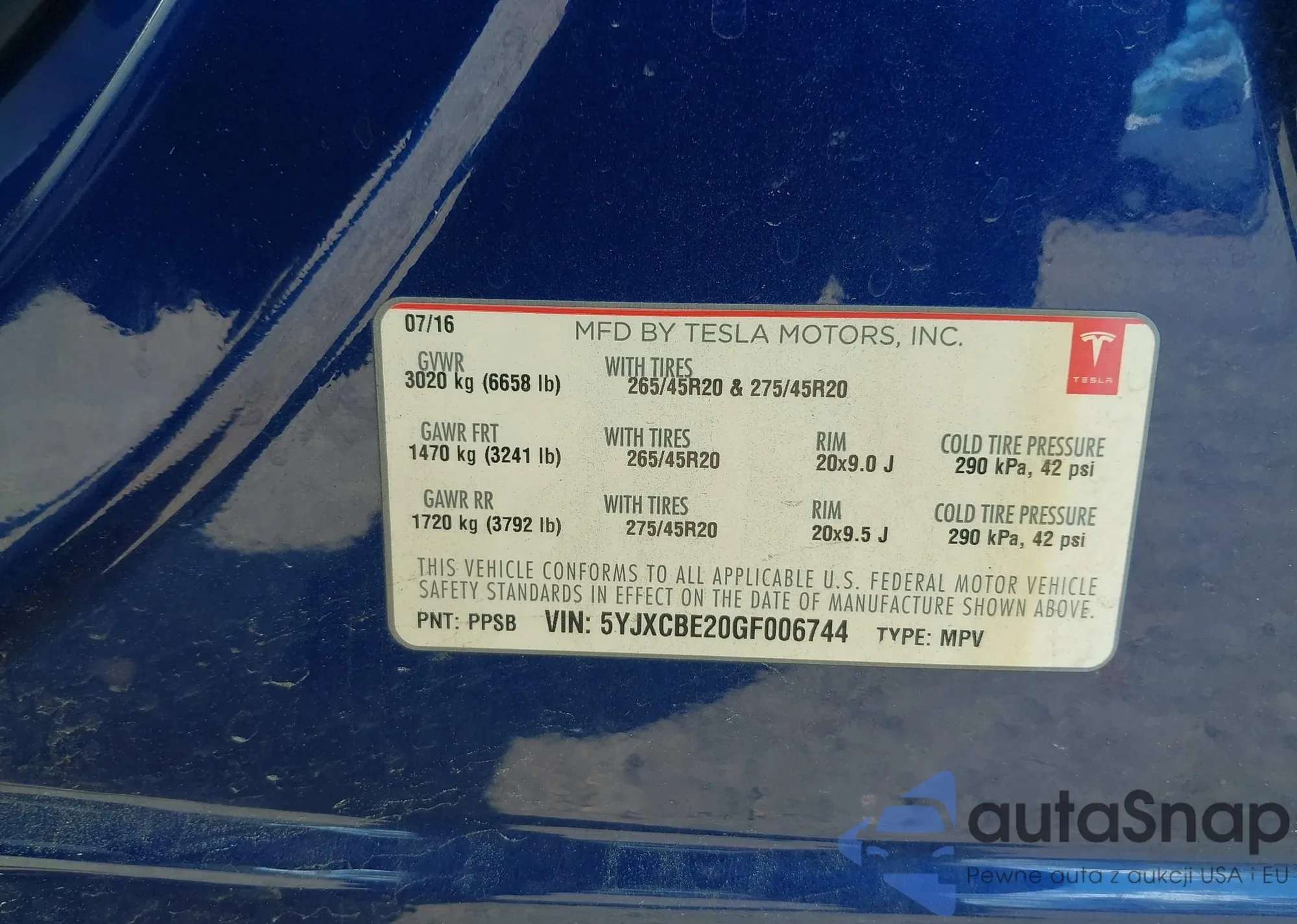 2016 Tesla Model X 60D/70D/75D/90D/P100D from USA, damaged, VIN 5YJXCBE20GF006744