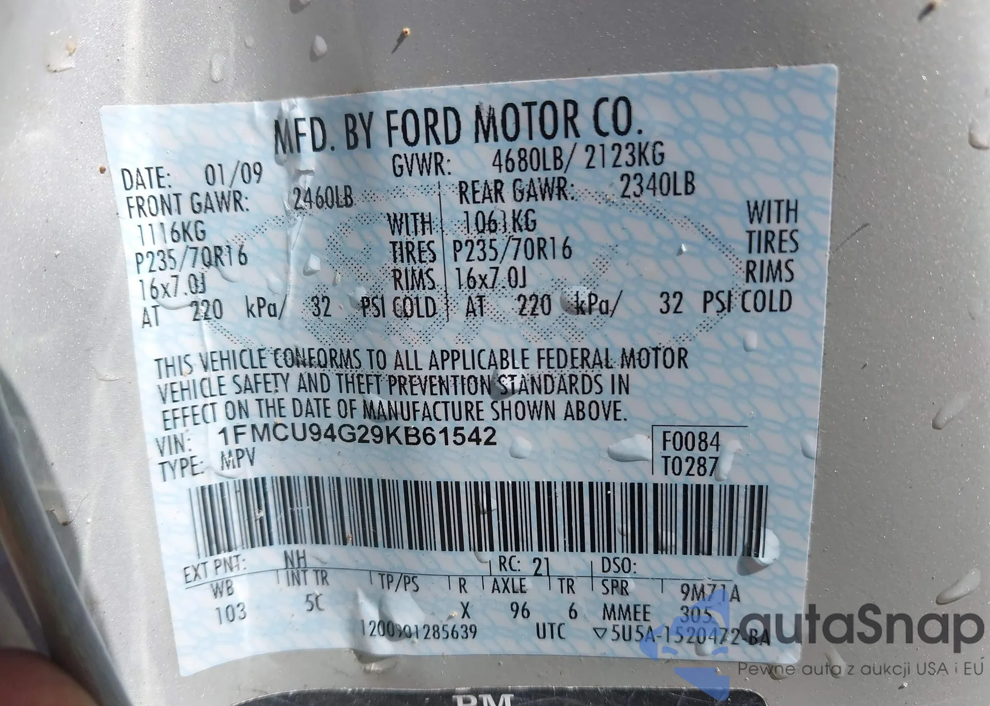 LOT: 42053095 VIN: 1FMCU94G29KB61542