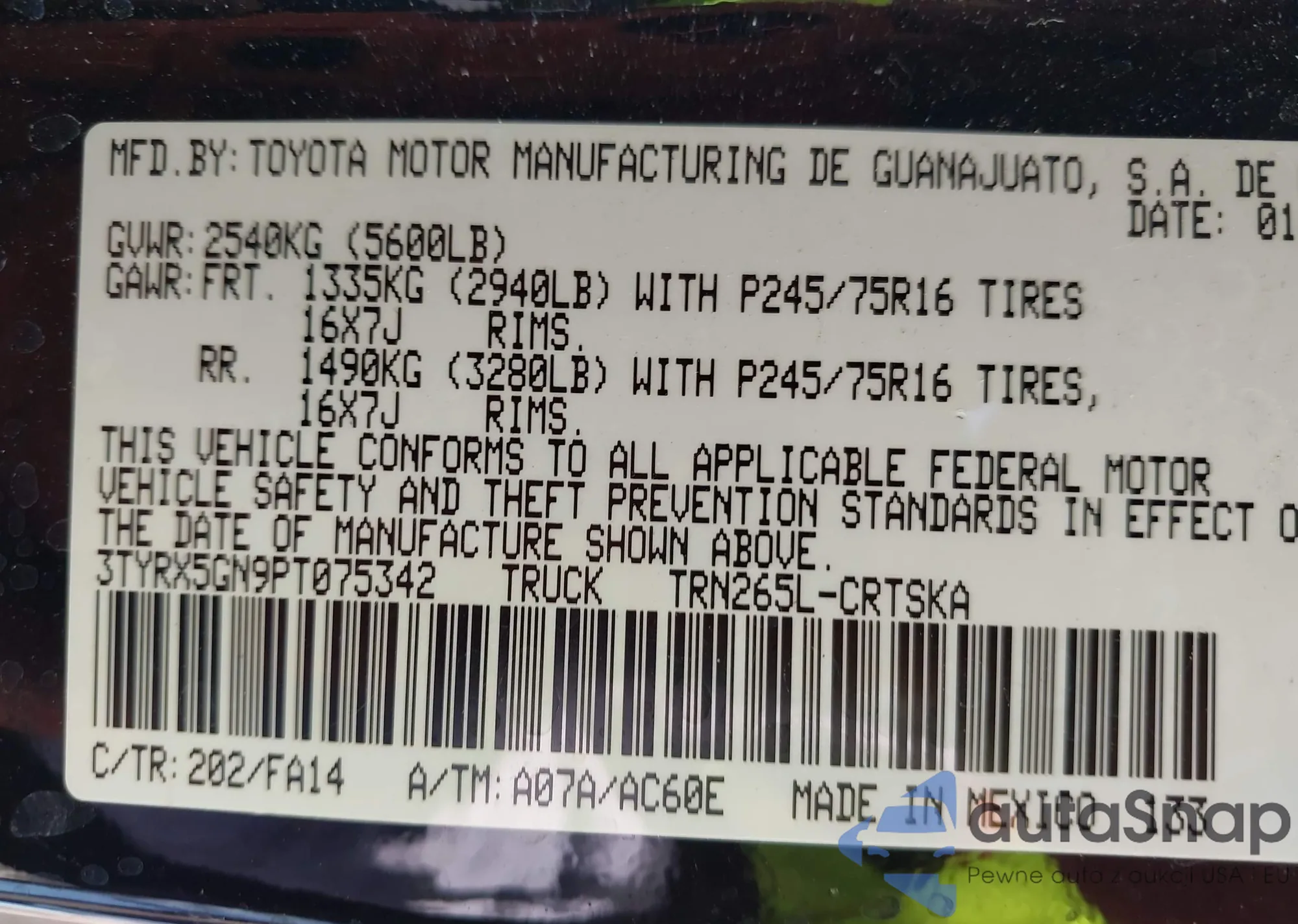 LOT: 42034149 VIN: JN8BT3BA6PW417500