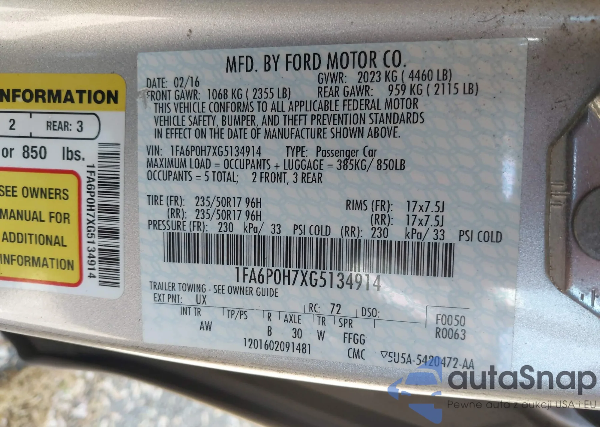 • VIN 1FA6P0H7XG5134914