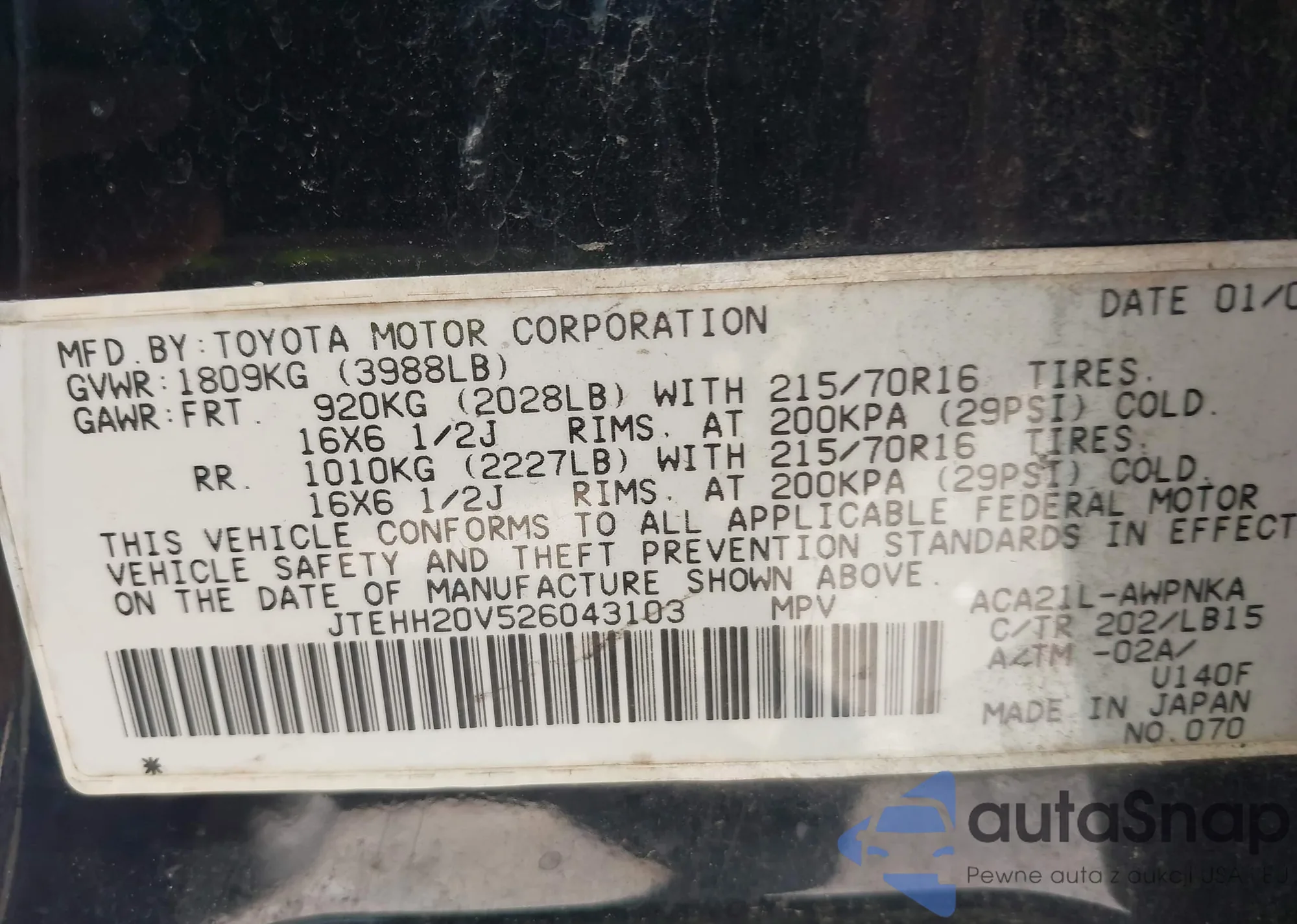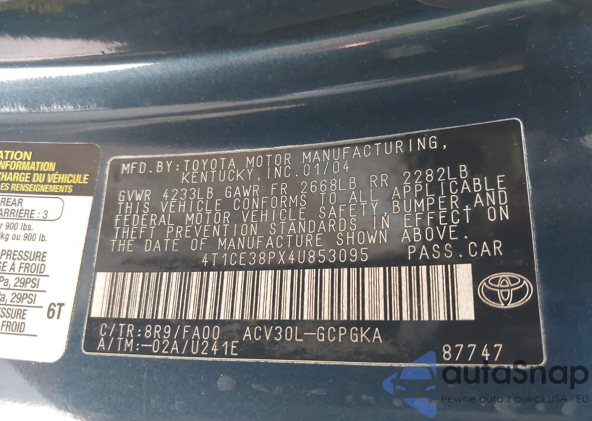 LOT: 42142752 VIN: 1NXBR32E43Z147682