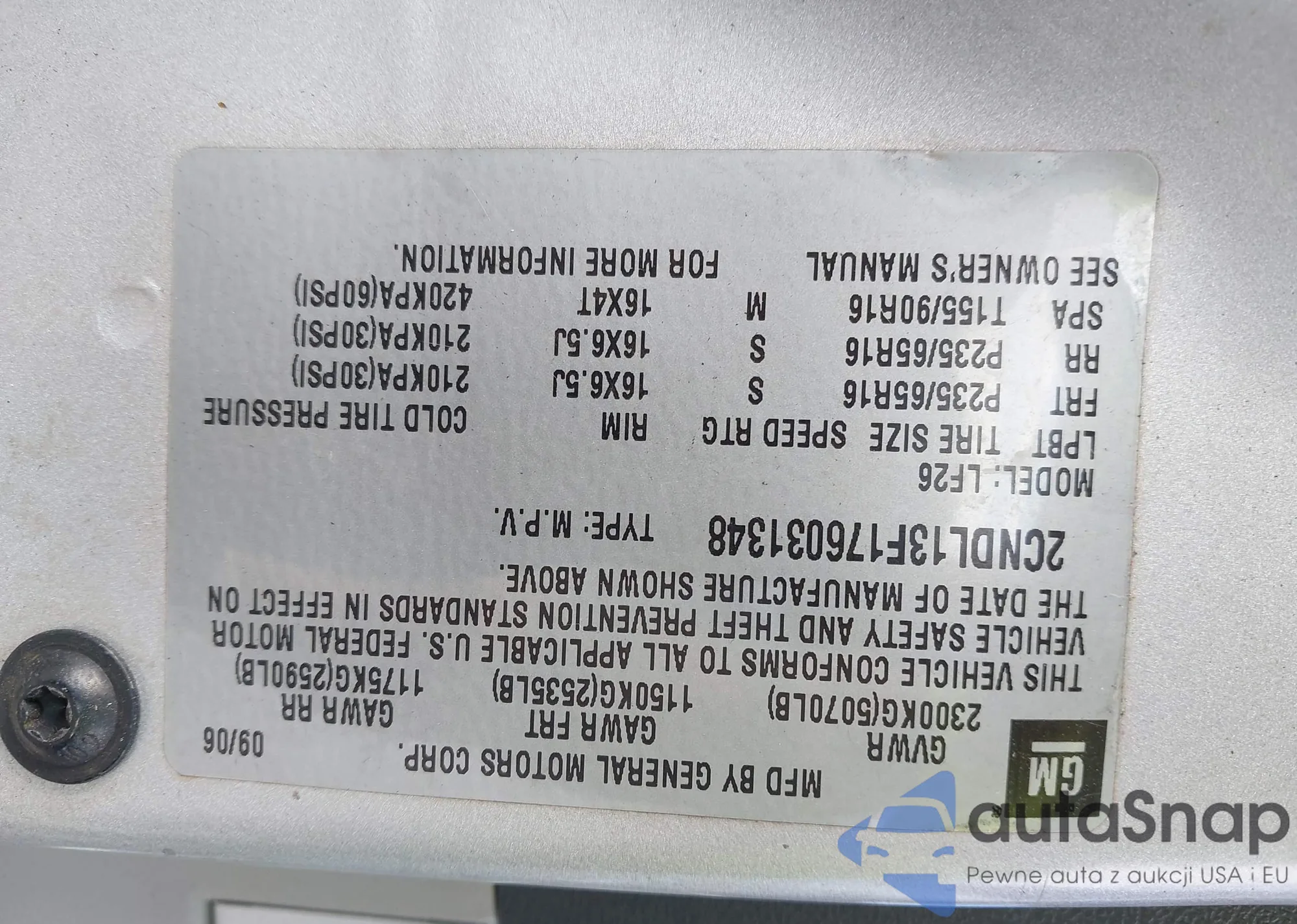 • VIN KL8CD6S96DC507904