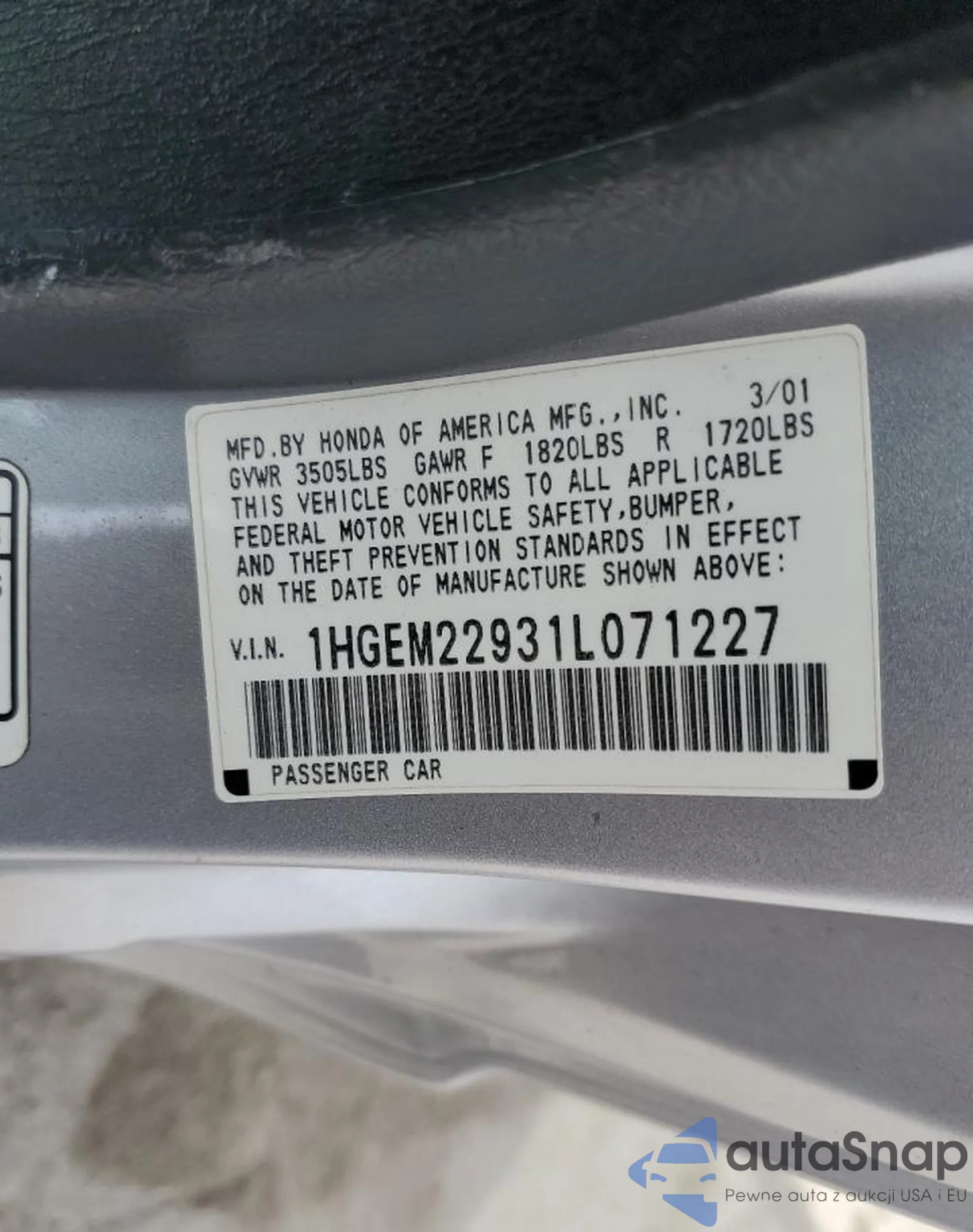 • VIN 1HGEM22931L071227