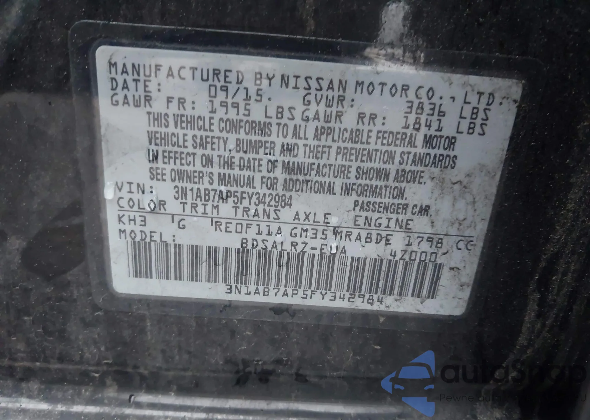 • VIN 3N1AB7AP5FY342984