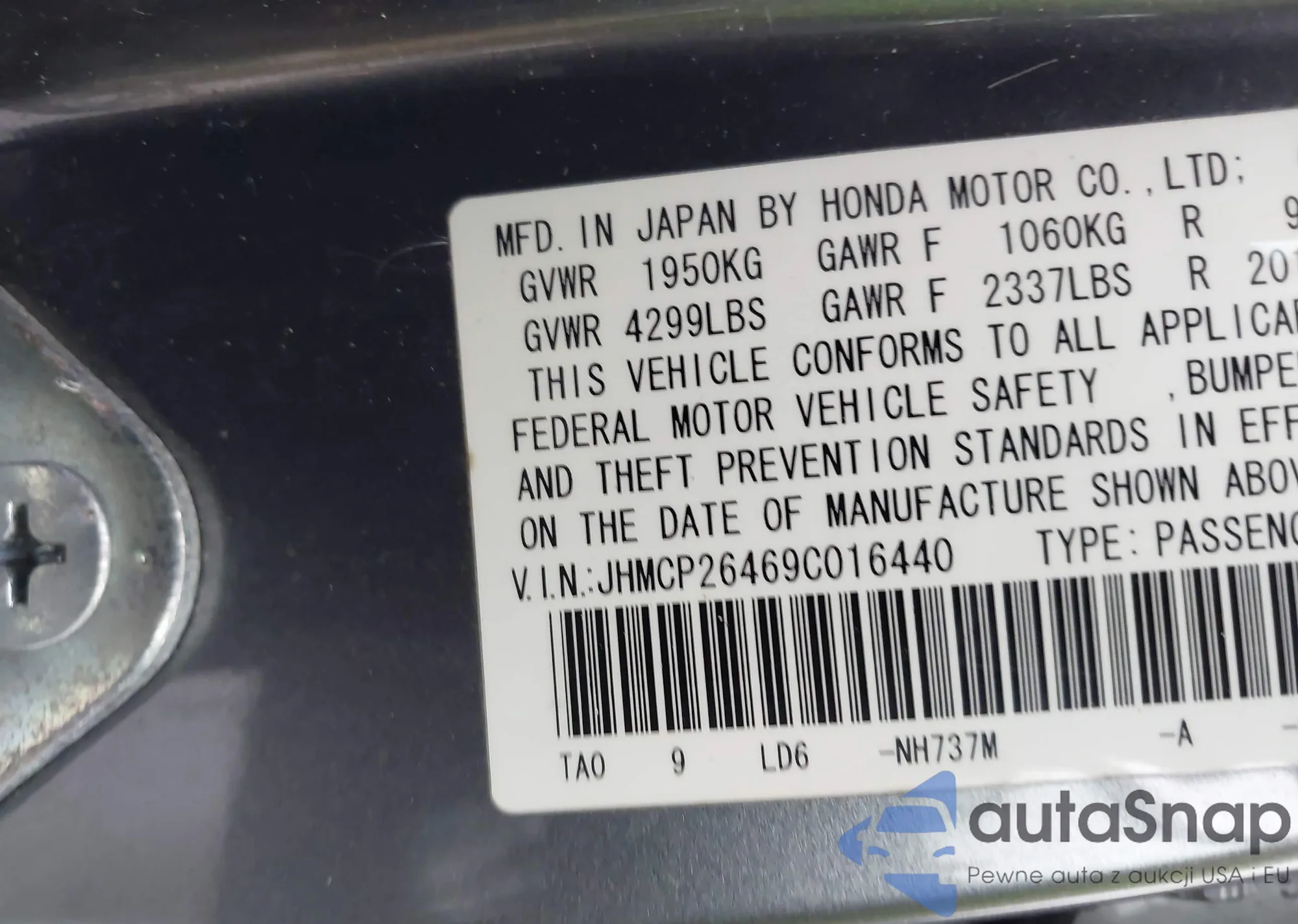 • VIN JHMCP26469C016440