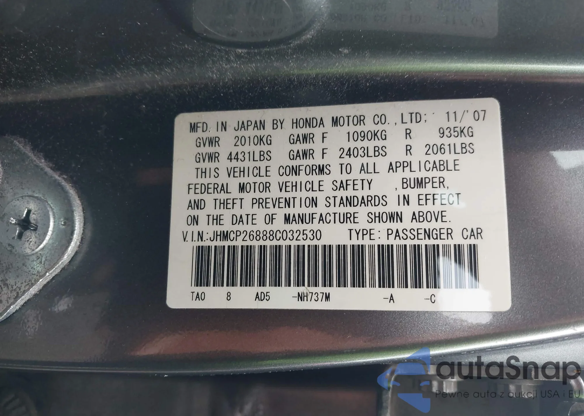 LOT: 42235668 VIN: JHMCP26888C032530