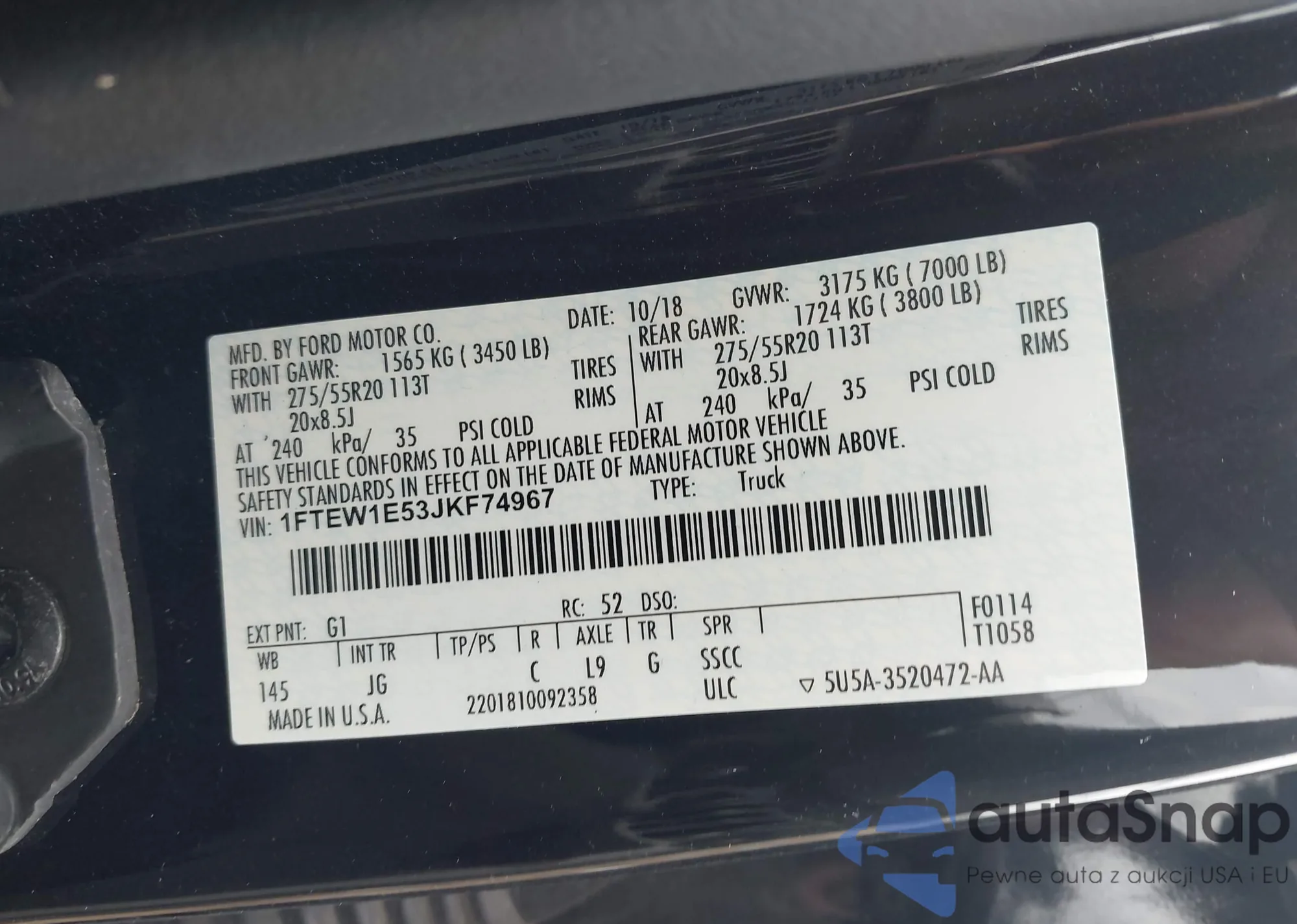 • VIN 1FTEW1E53JKF74967
