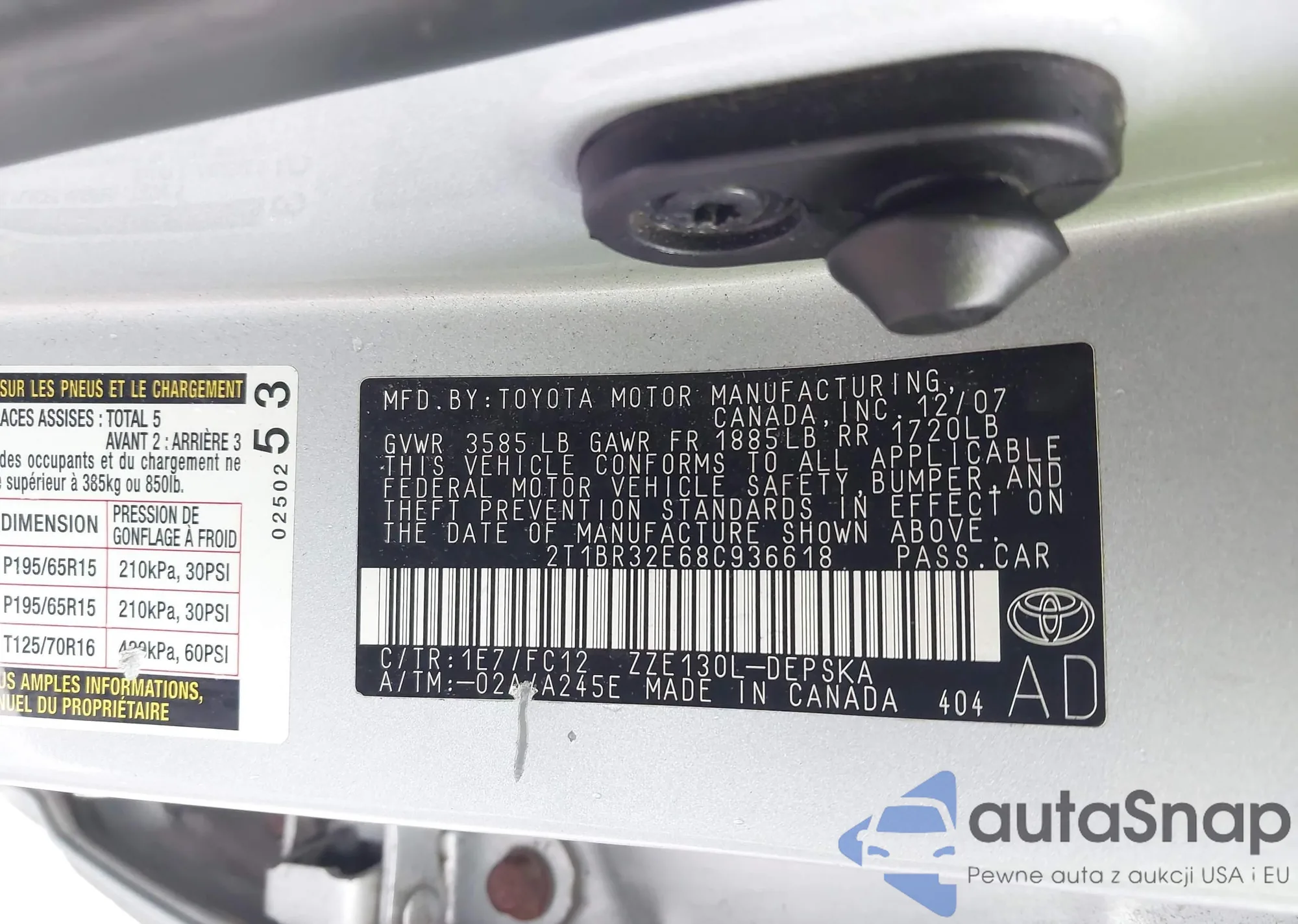 • VIN 2T1BR32E68C936618