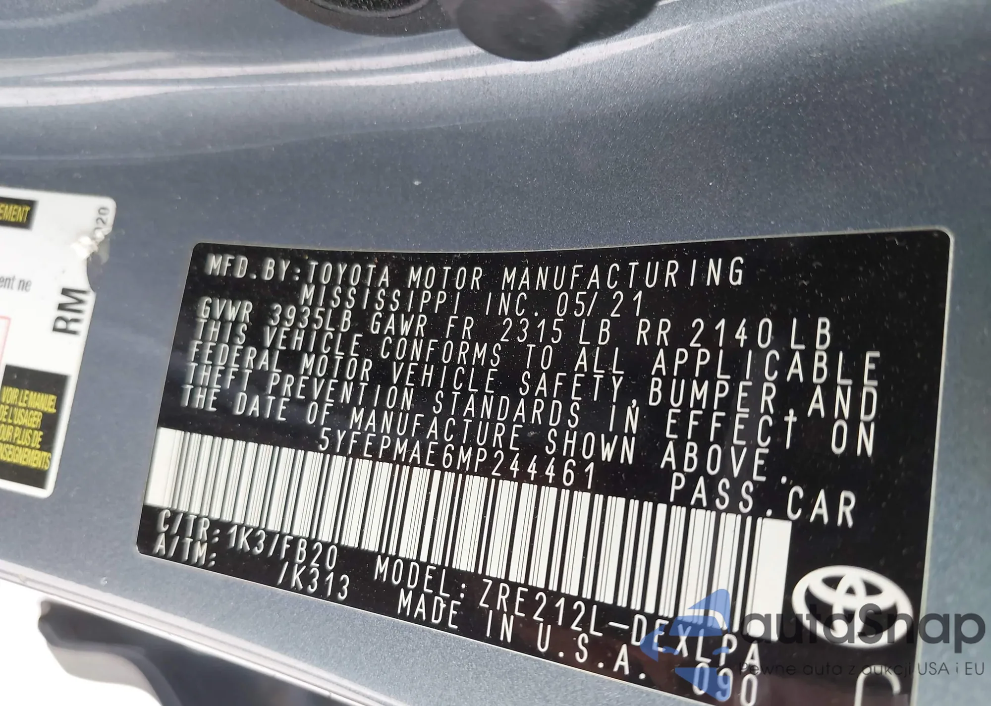 LOT: 42326917 VIN: 5YFEPMAE6MP244461