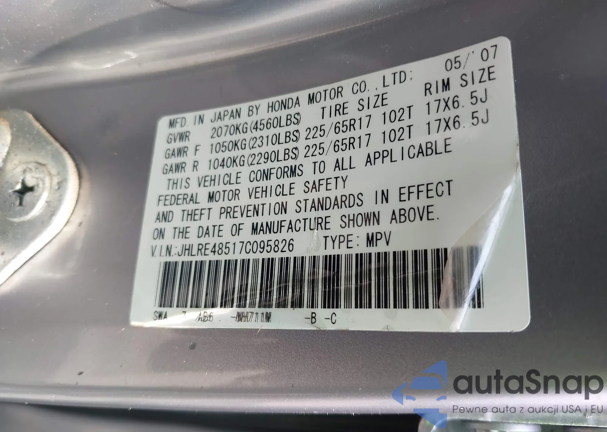 • VIN JHLRE48517C095826