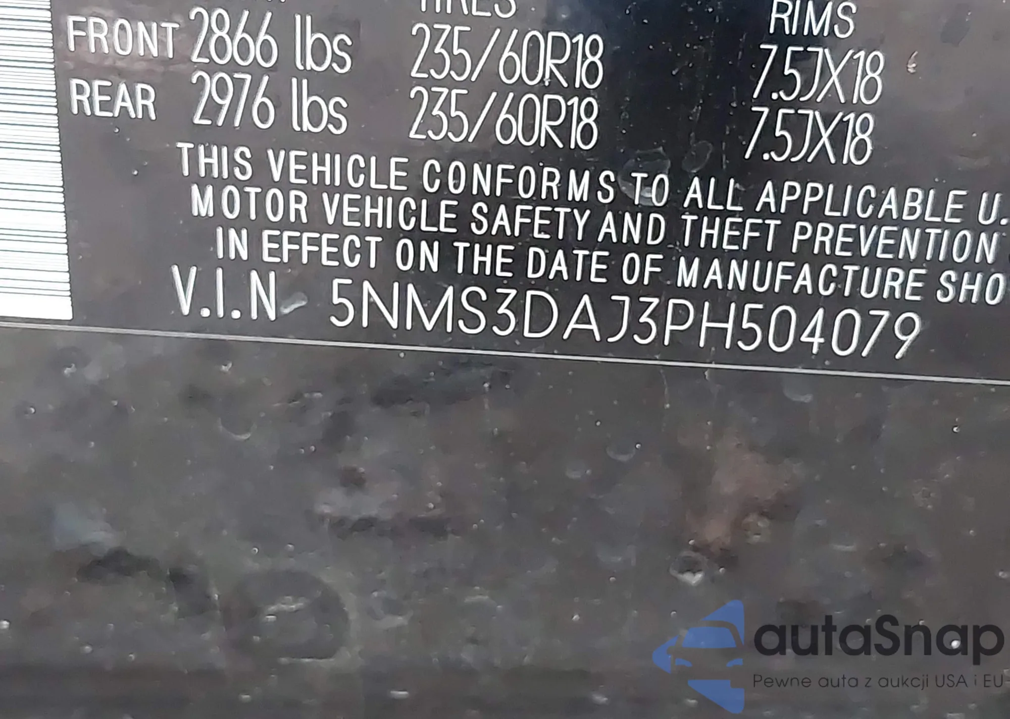 • VIN 5NMS3DAJ3PH504079