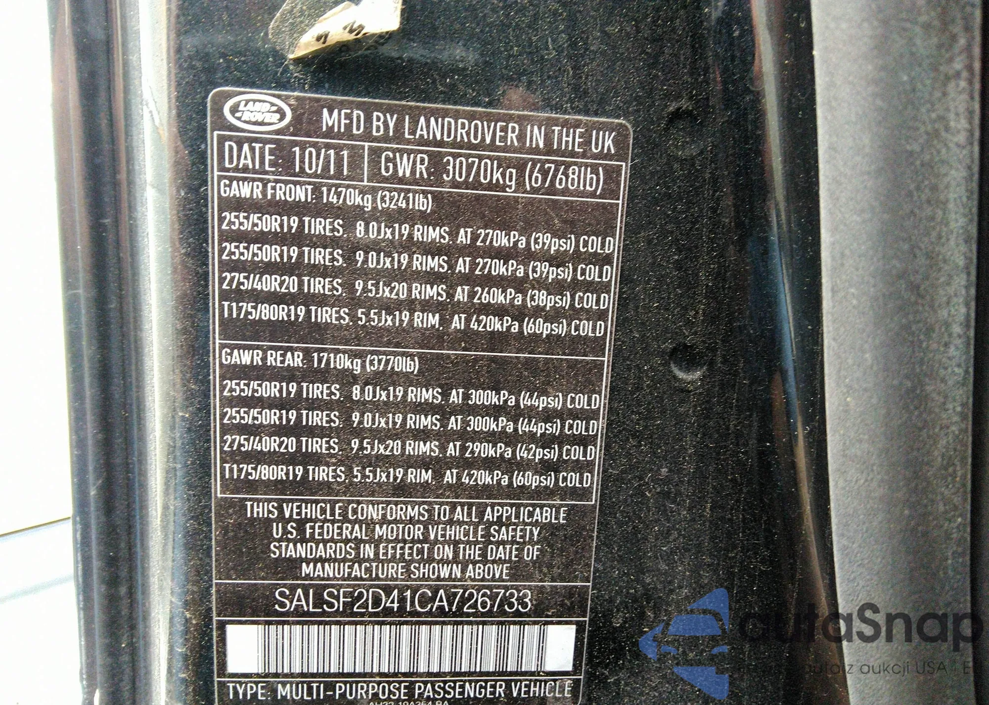• VIN SALSF2D41CA726733