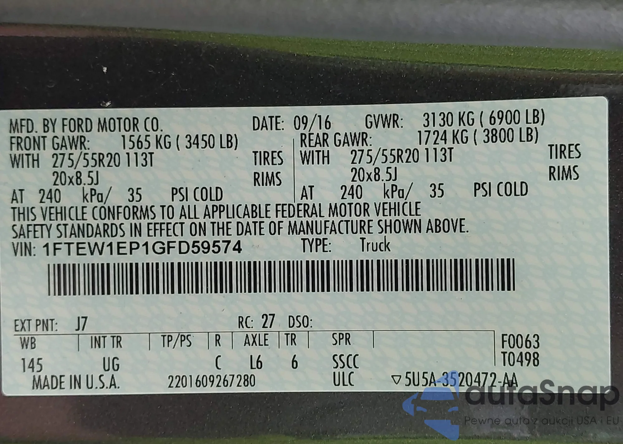• VIN 1FTEW1EP1GFD59574