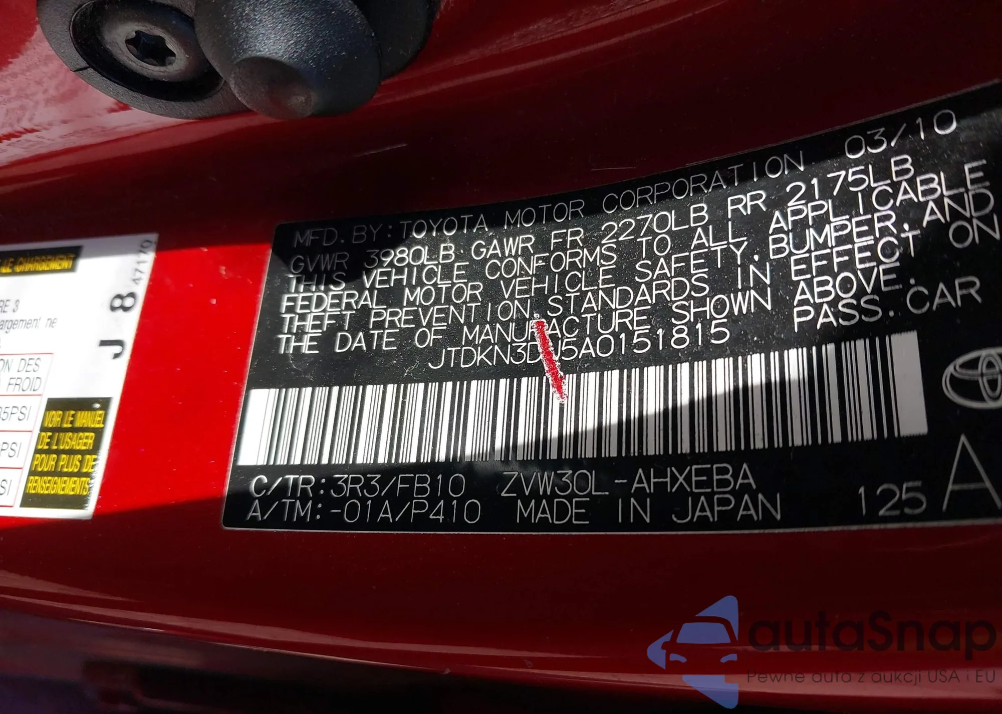 • VIN JTDKN3DU5A0151815
