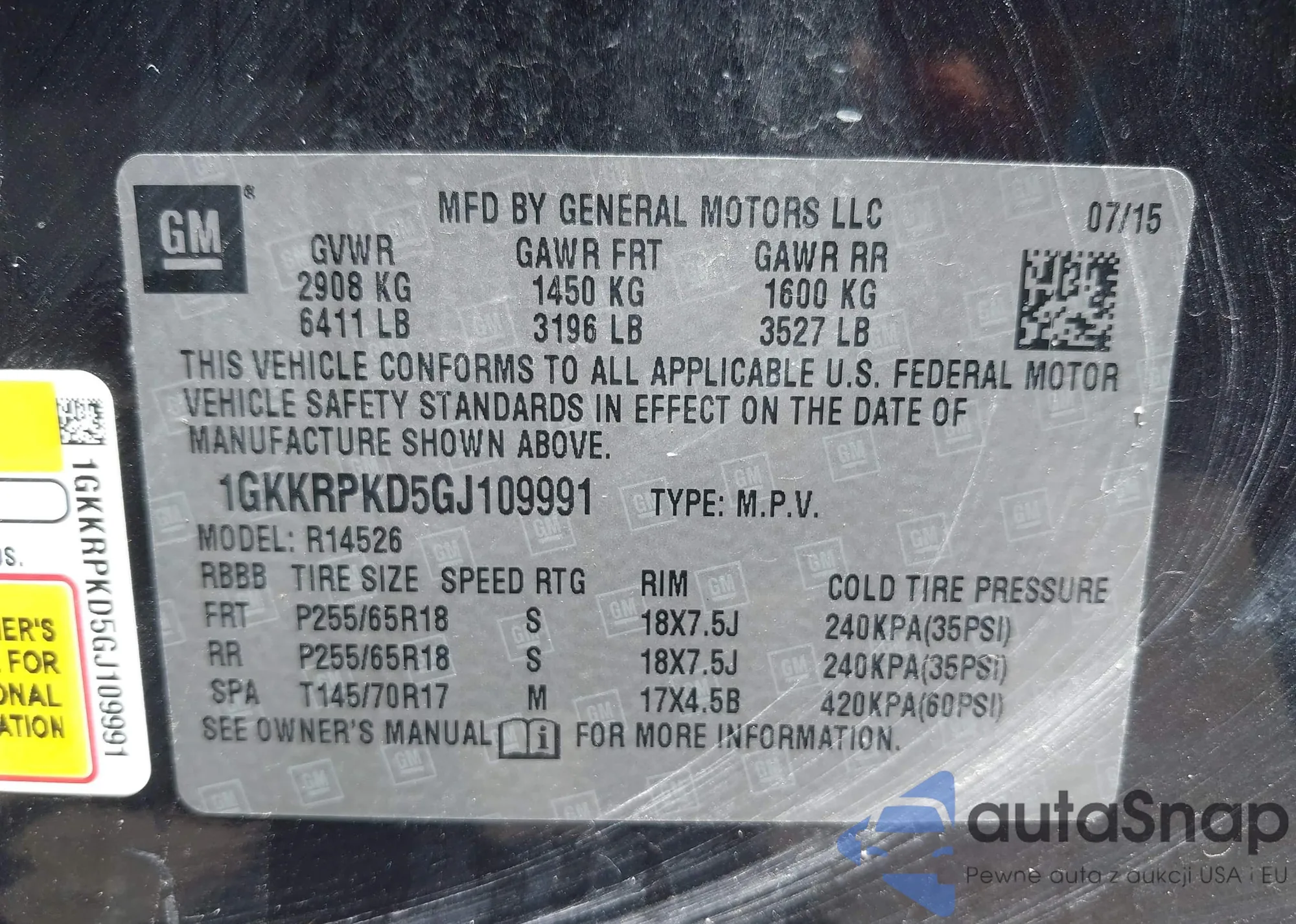 LOT: 42246176 VIN: 1GKKRPKD5GJ109991