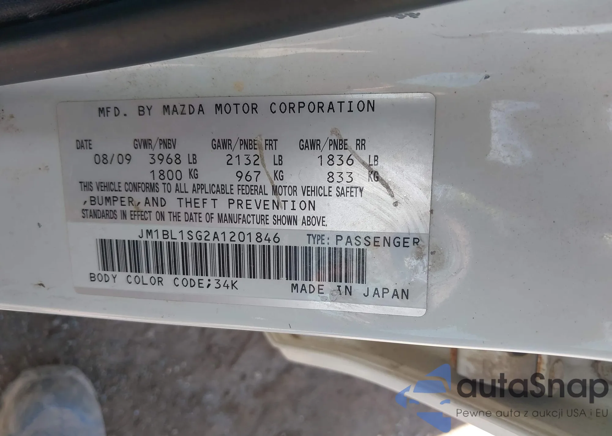 LOT: 42267763 VIN: JM1BL1SG2A1201846