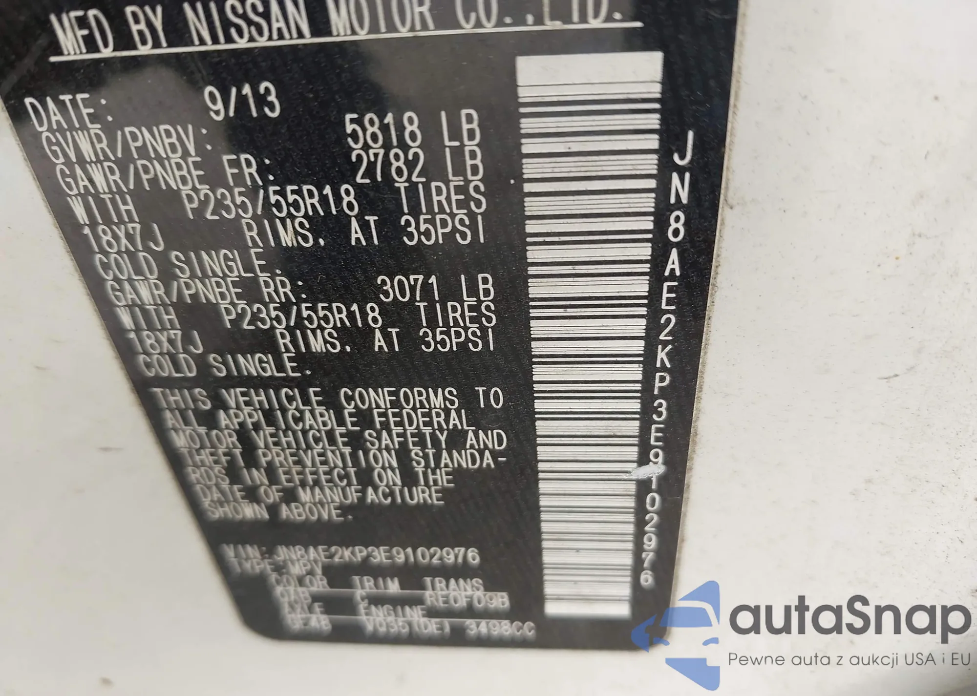 LOT: 42361100 VIN: JN8AE2KP3E9102976