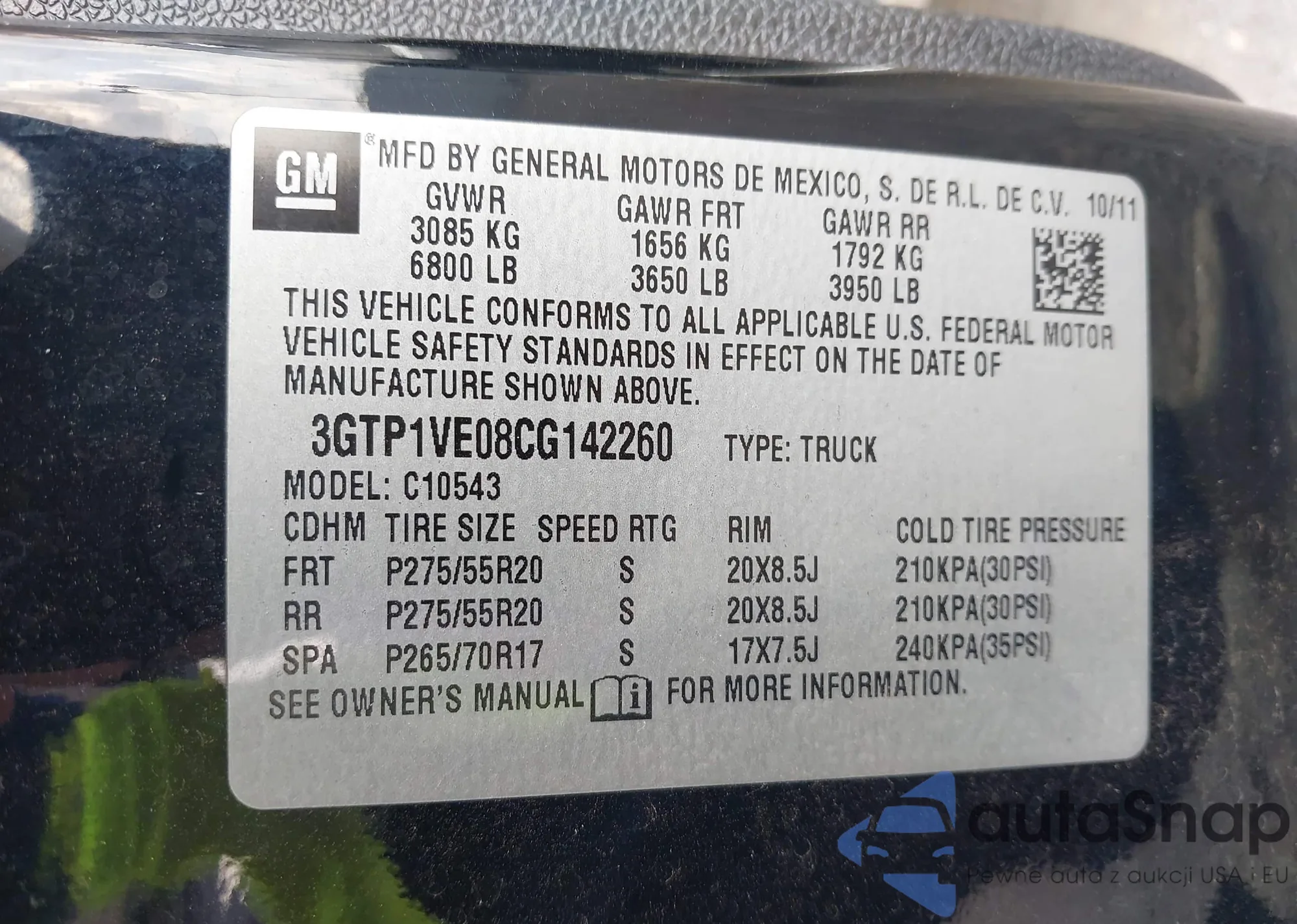 • VIN 3GTP1VE08CG142260