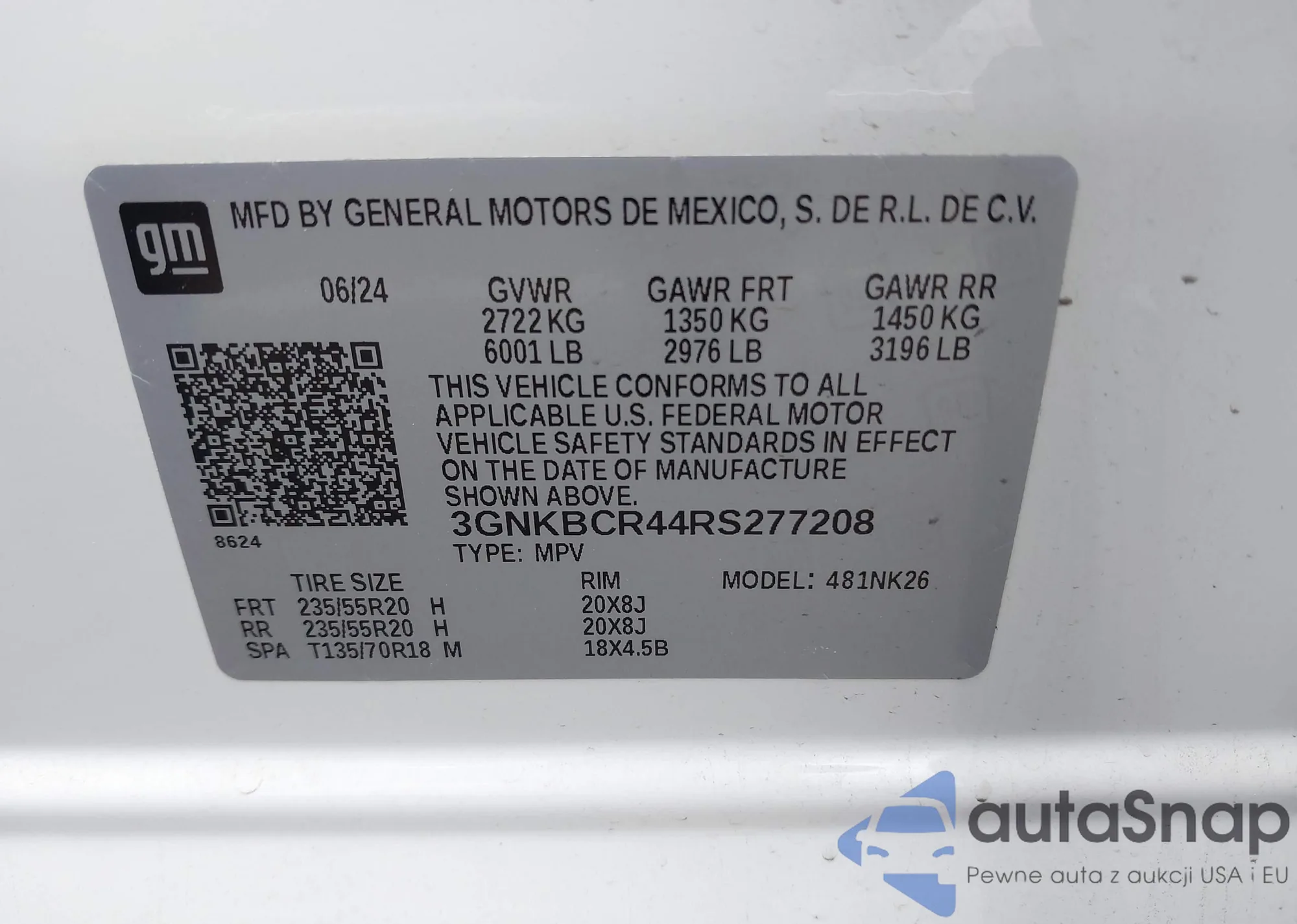 • VIN 3GNKBCR44RS277208