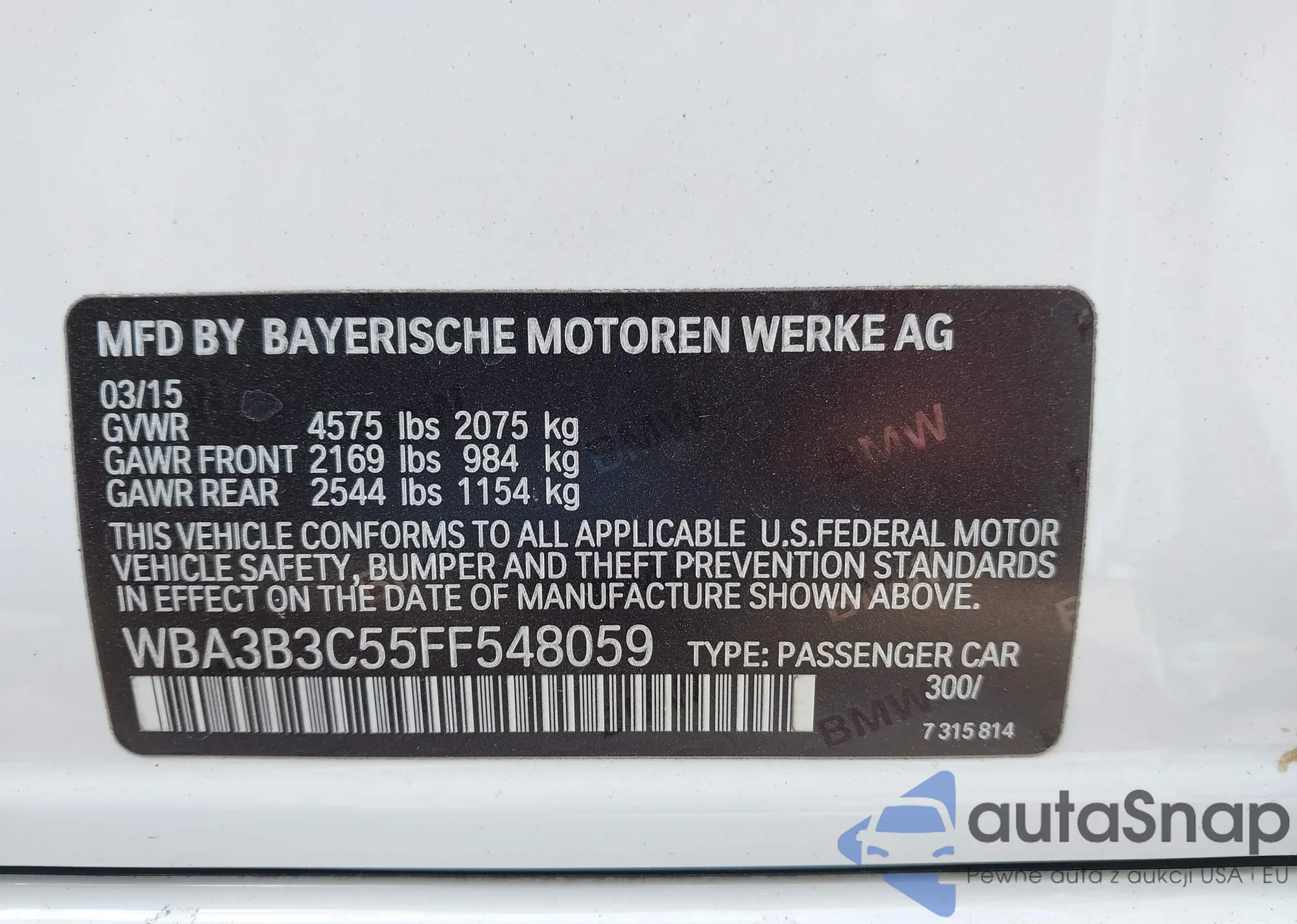 LOT: 42322475 VIN: WBA3B3C55FF548059
