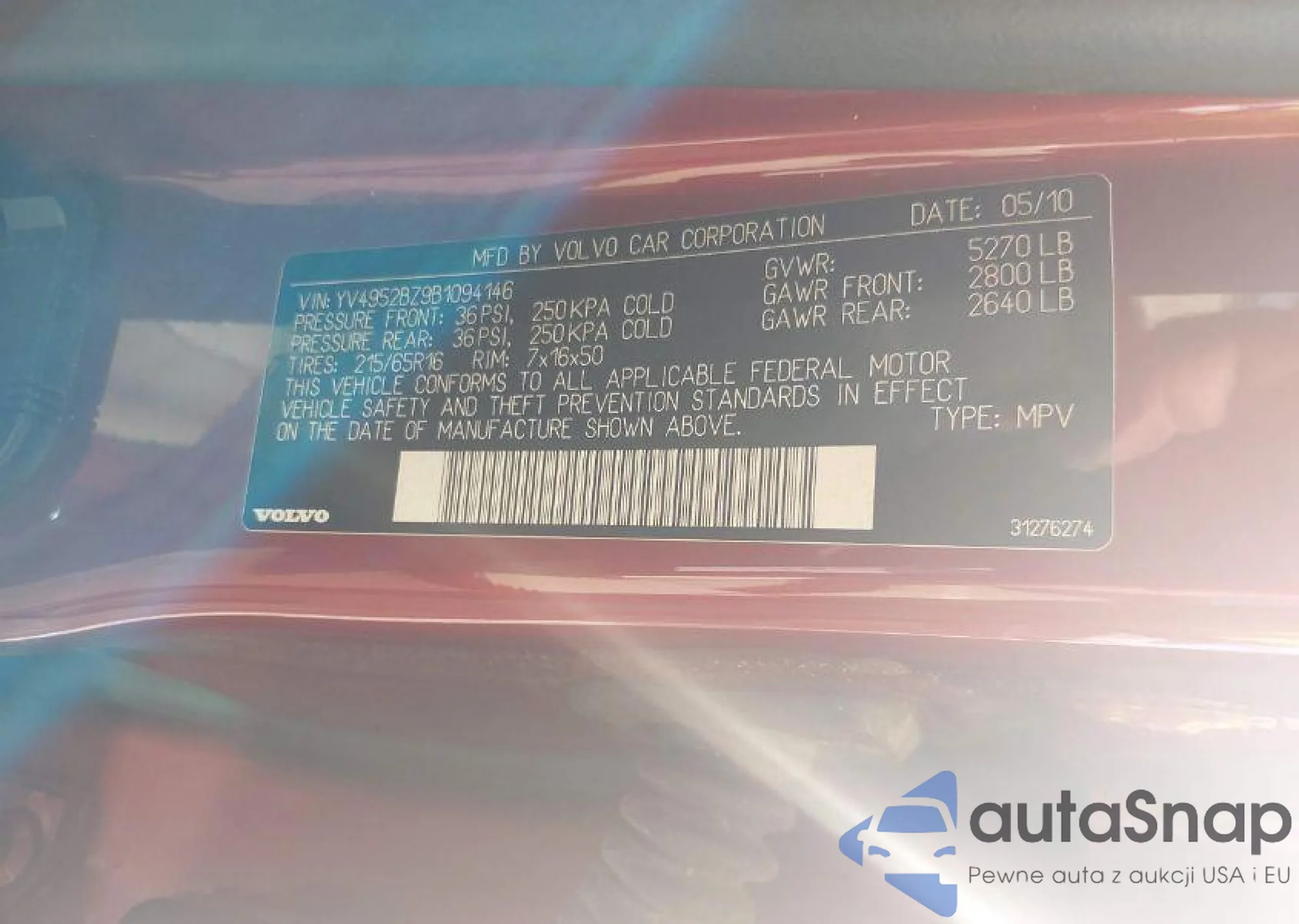 • VIN 1HGCP2F80CA062516