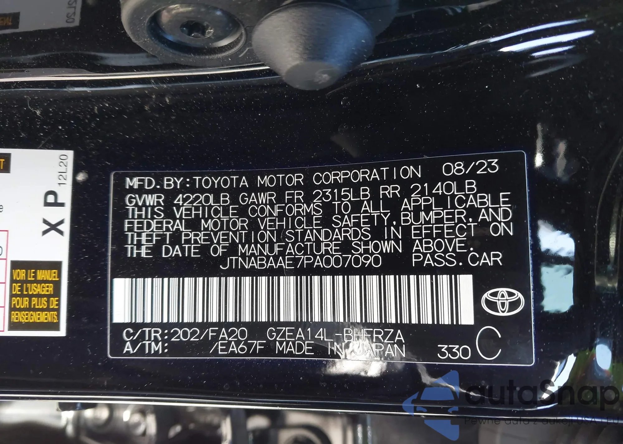 LOT: 41912543 VIN: JTNABAAE7PA007090