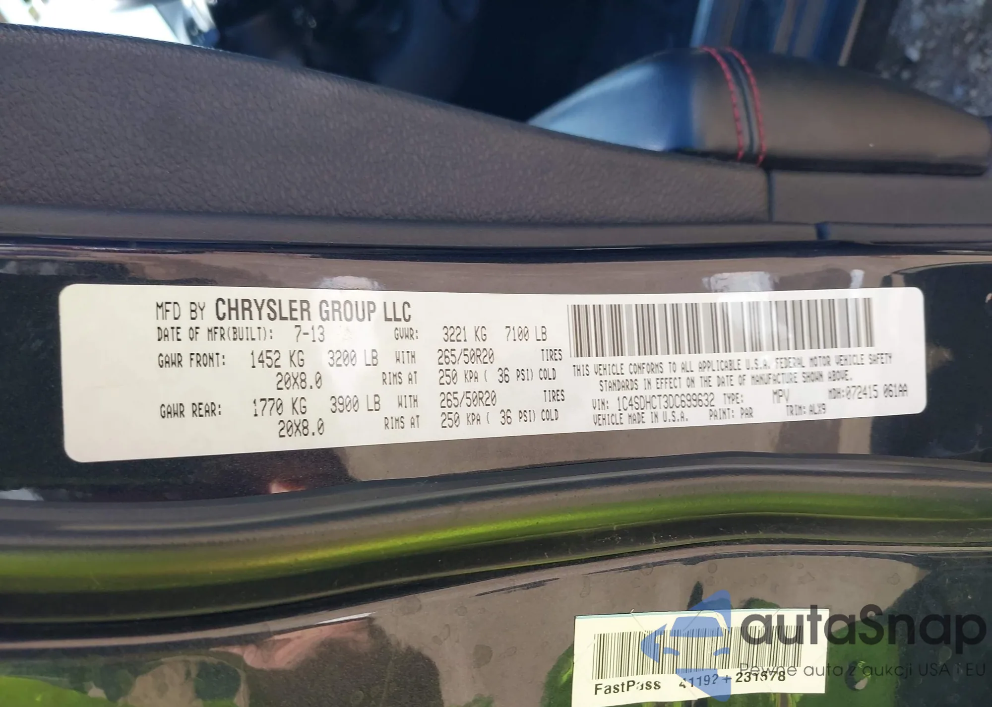 LOT: 42005830 VIN: 1C4SDHCT3DC699632