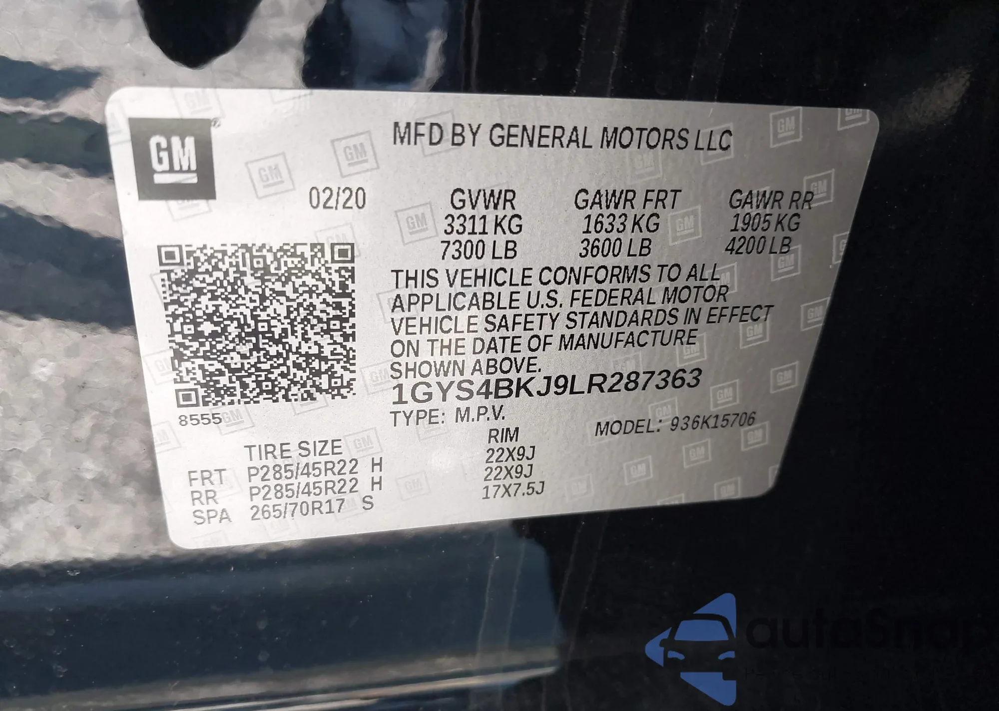 • VIN 1GYS4BKJ9LR287363