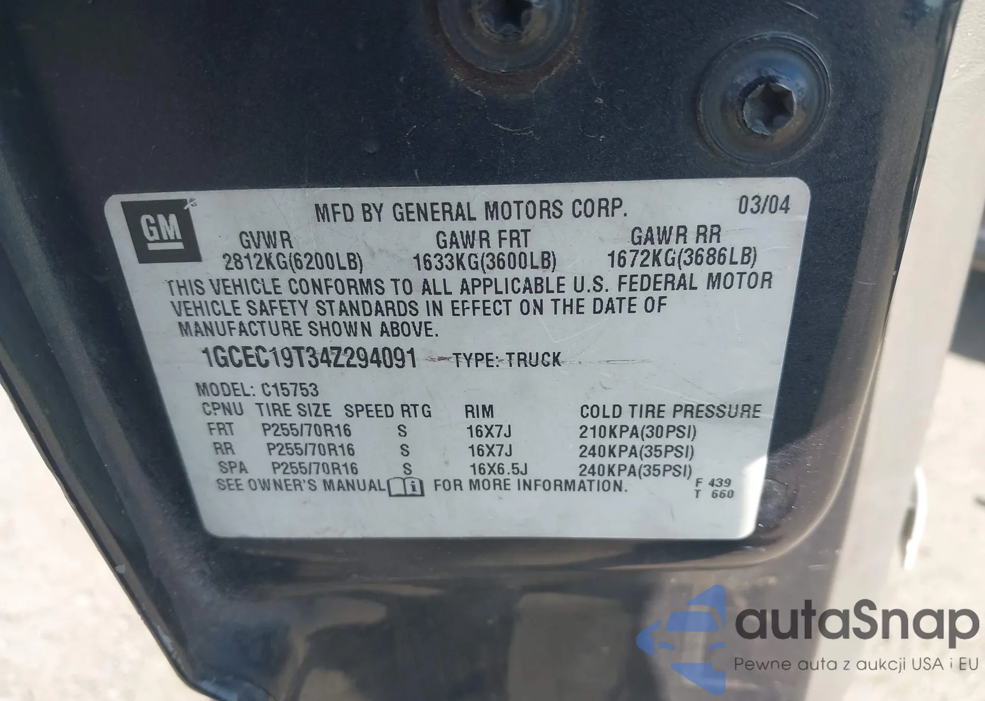 LOT: 41954853 VIN: 1GCEC19T34Z294091