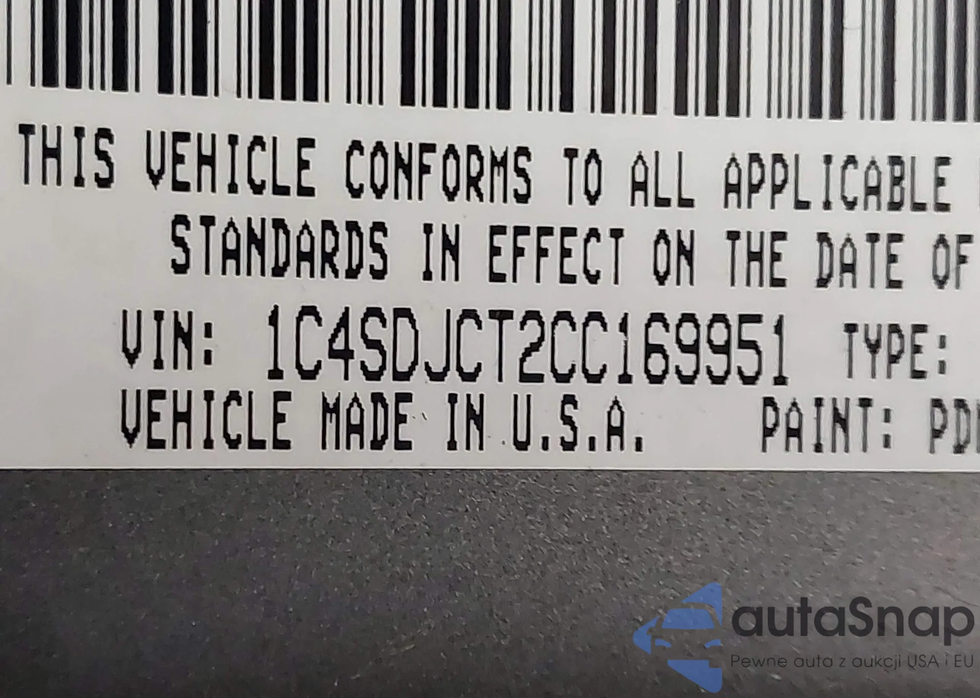 LOT: 42026886 VIN: 2HGFB2F83CH557418