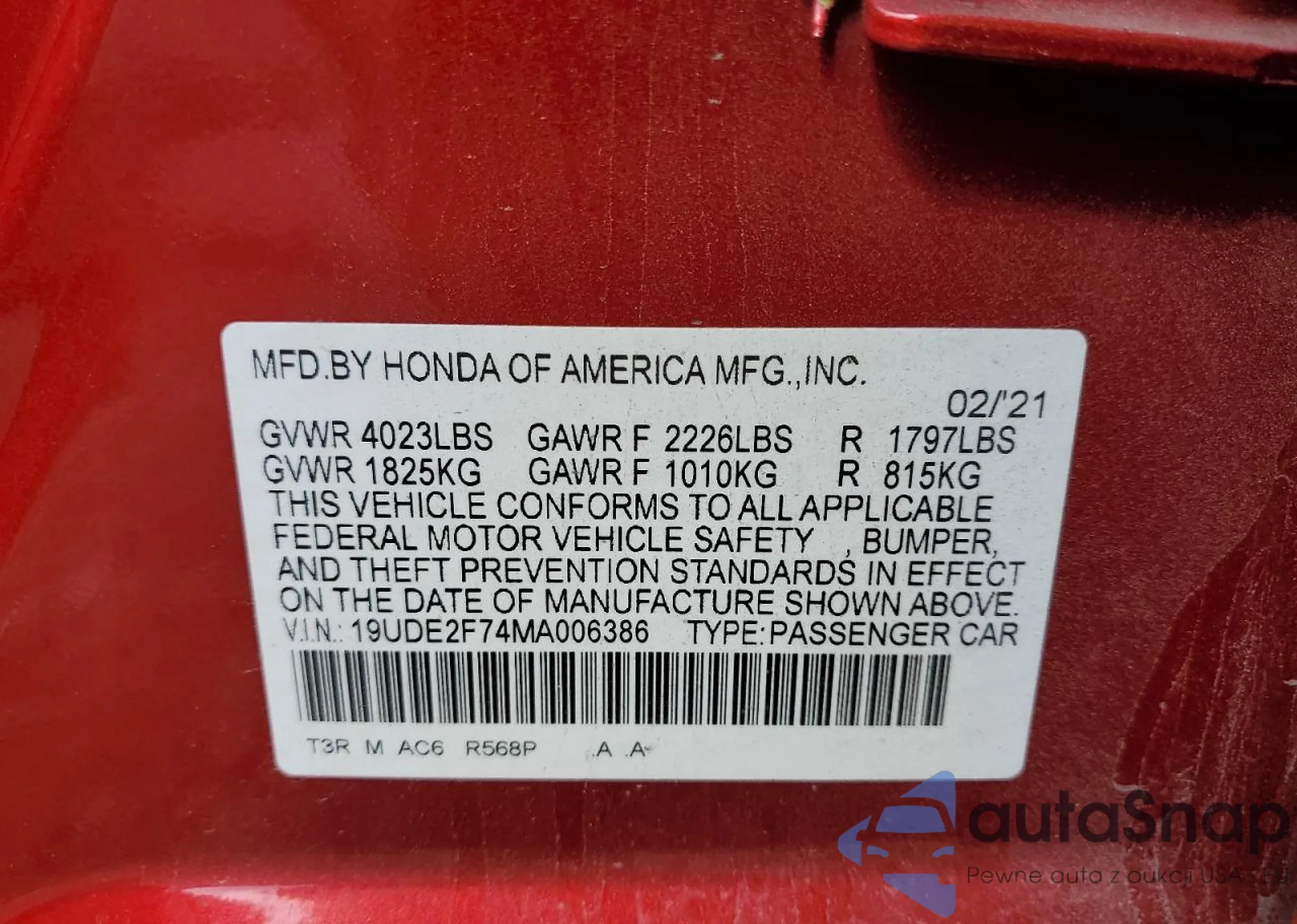 LOT: 59323205 VIN: JTDEPMAE5NJ231383