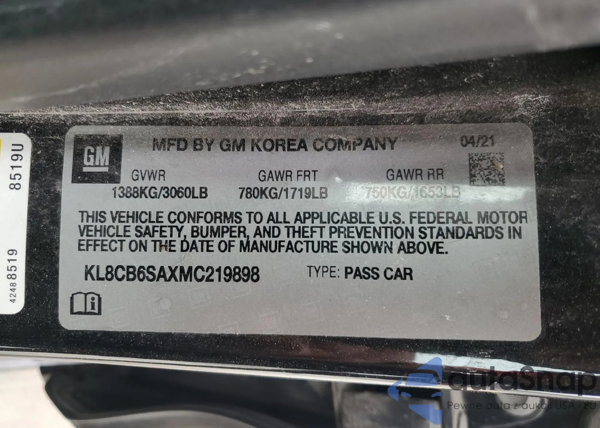• VIN 2GCVKPEC0K1235873