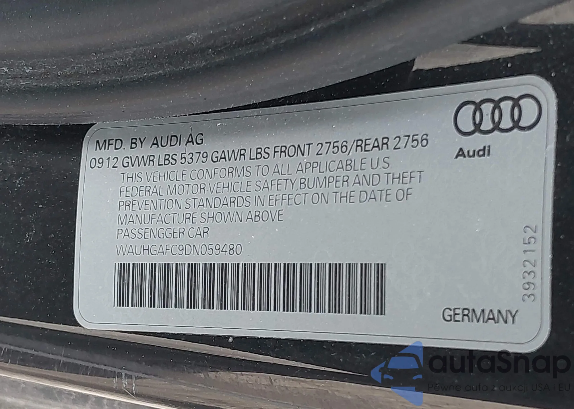 • VIN WAUHGAFC9DN059480