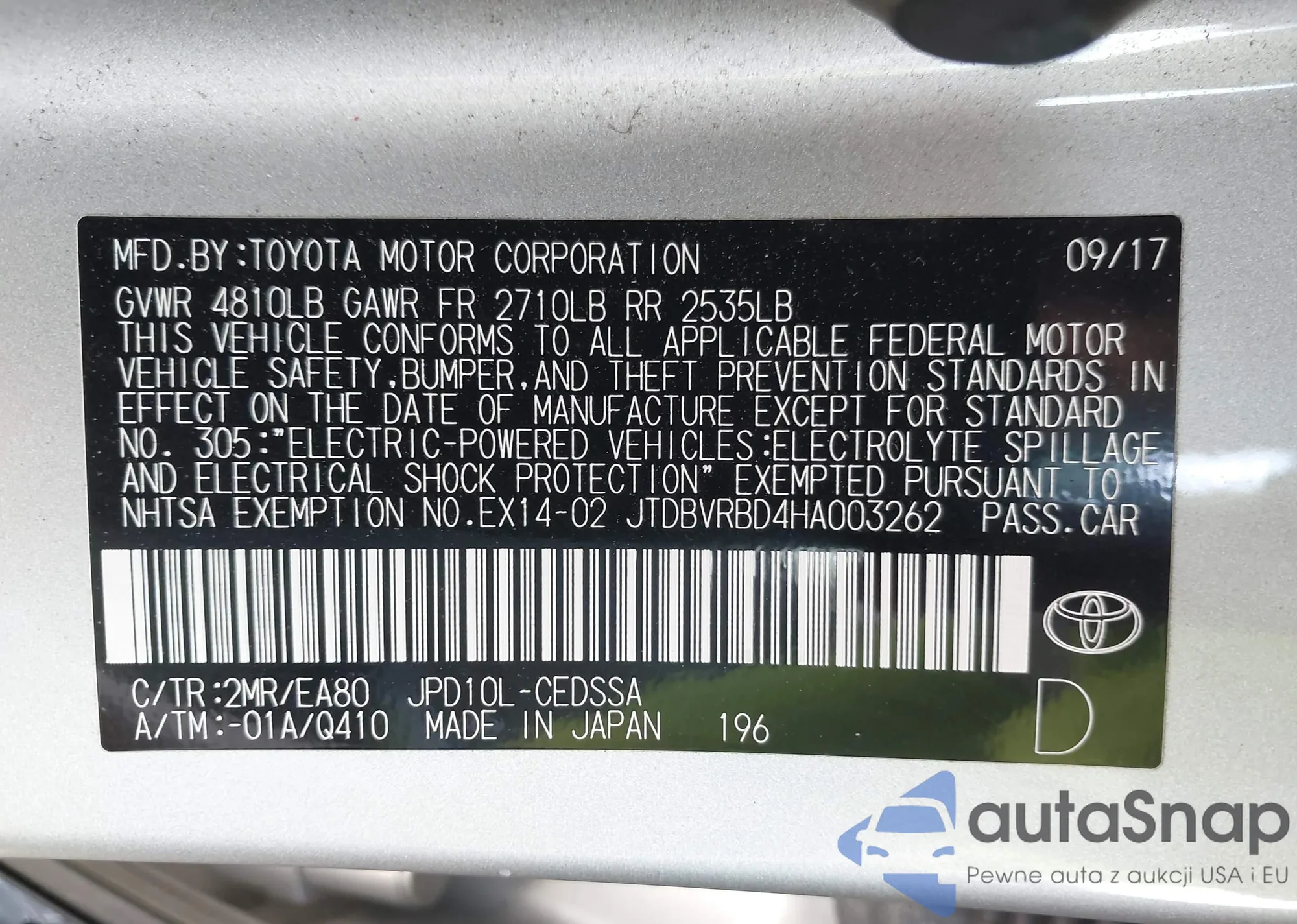 • VIN JTDBVRBD4HA003262