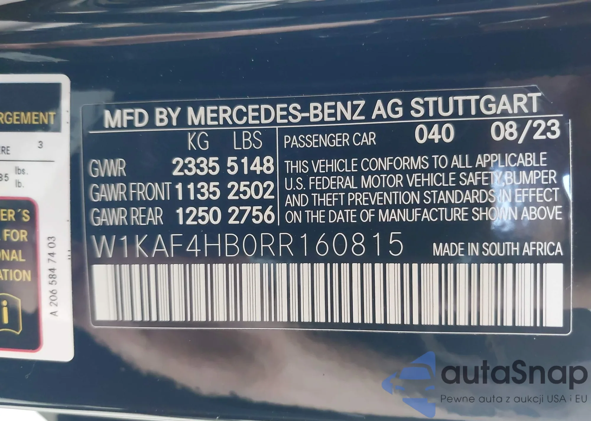 • VIN W1KAF4HB0RR160815