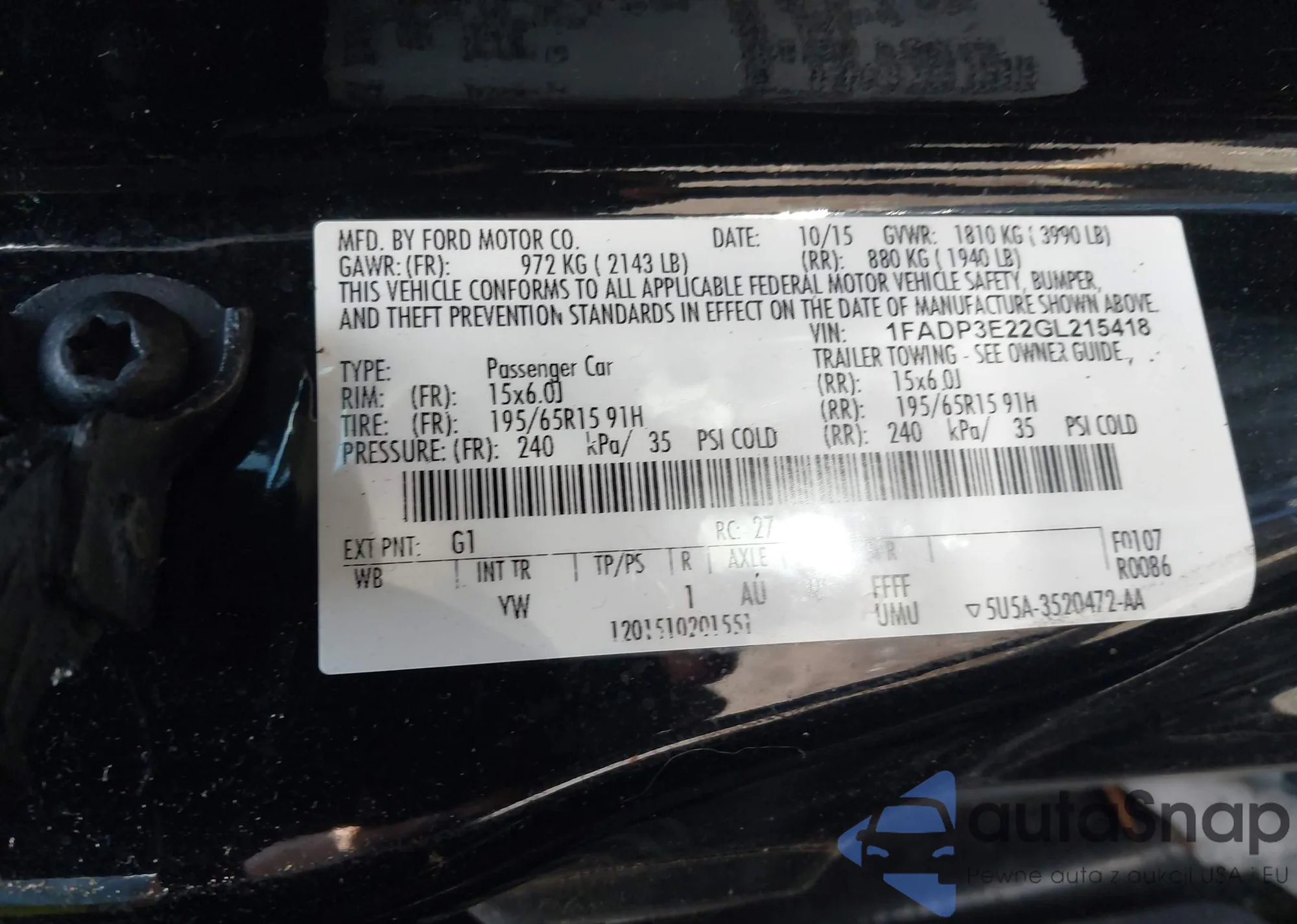 • VIN 1FADP3E22GL215418