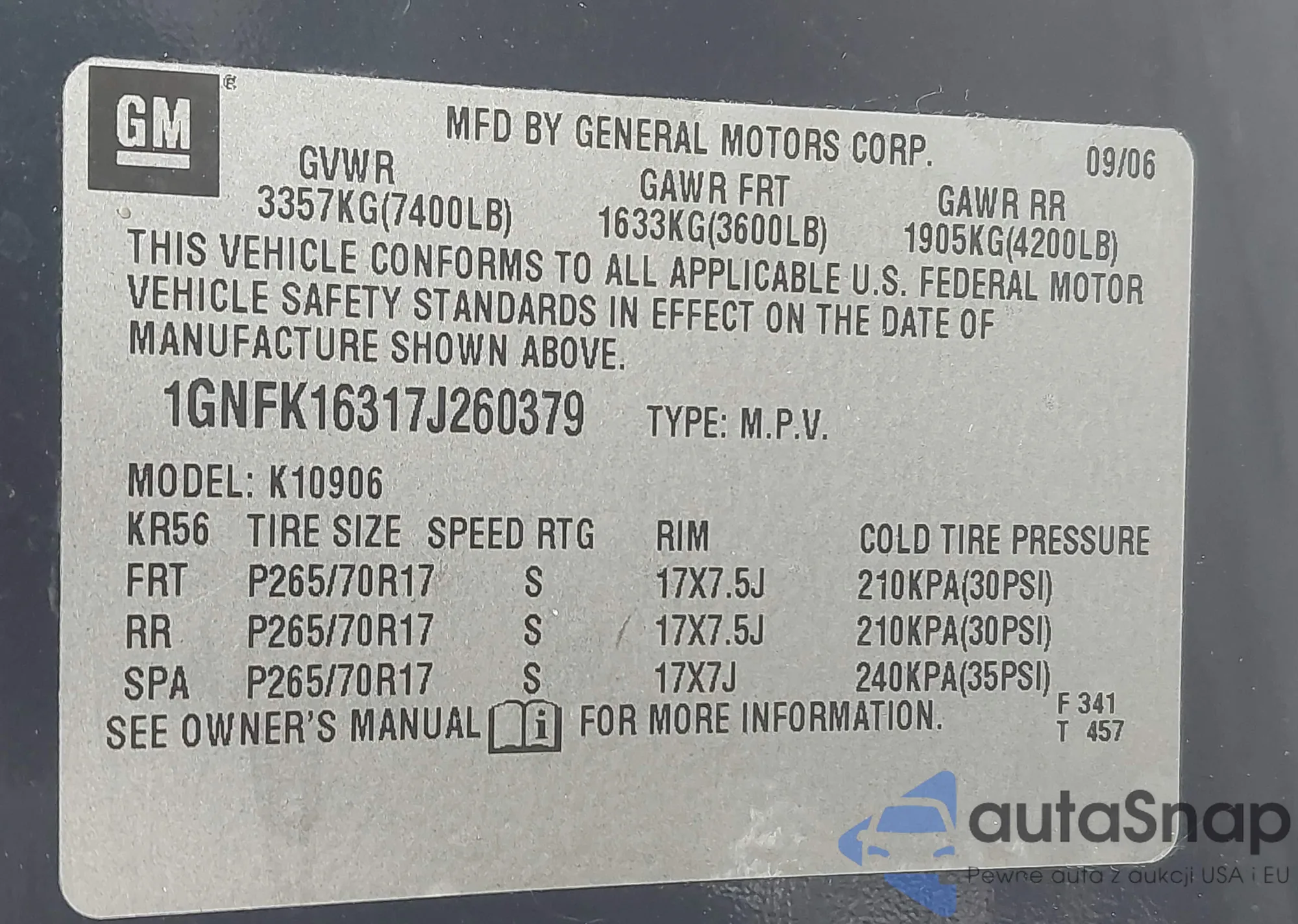 • VIN 1GNFK16317J260379