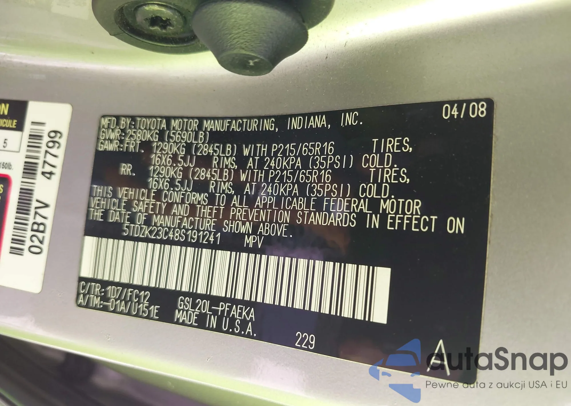 LOT: 42257294 VIN: 5TDZK23C48S191241