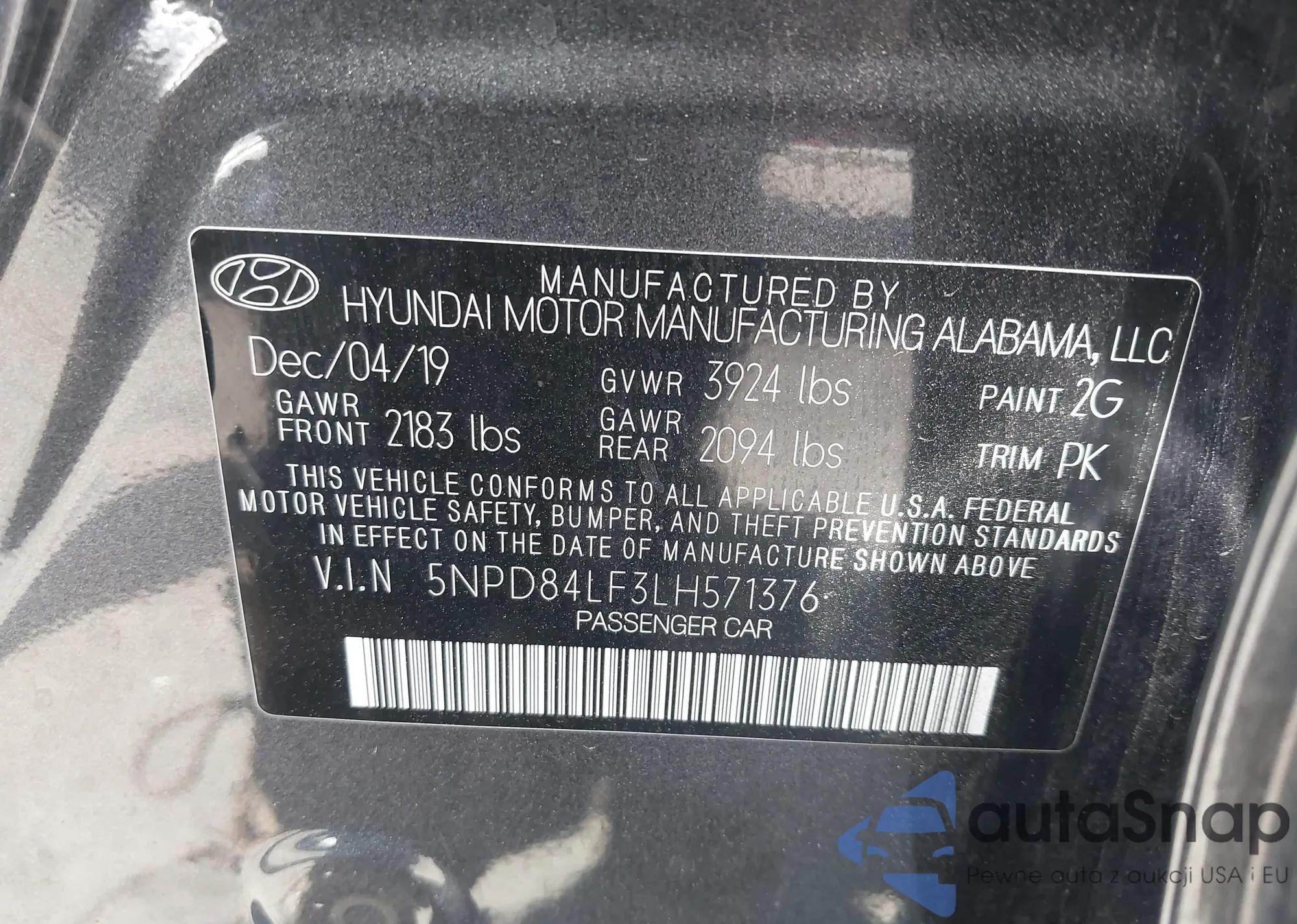 • VIN 5NPE24AF2FH167322