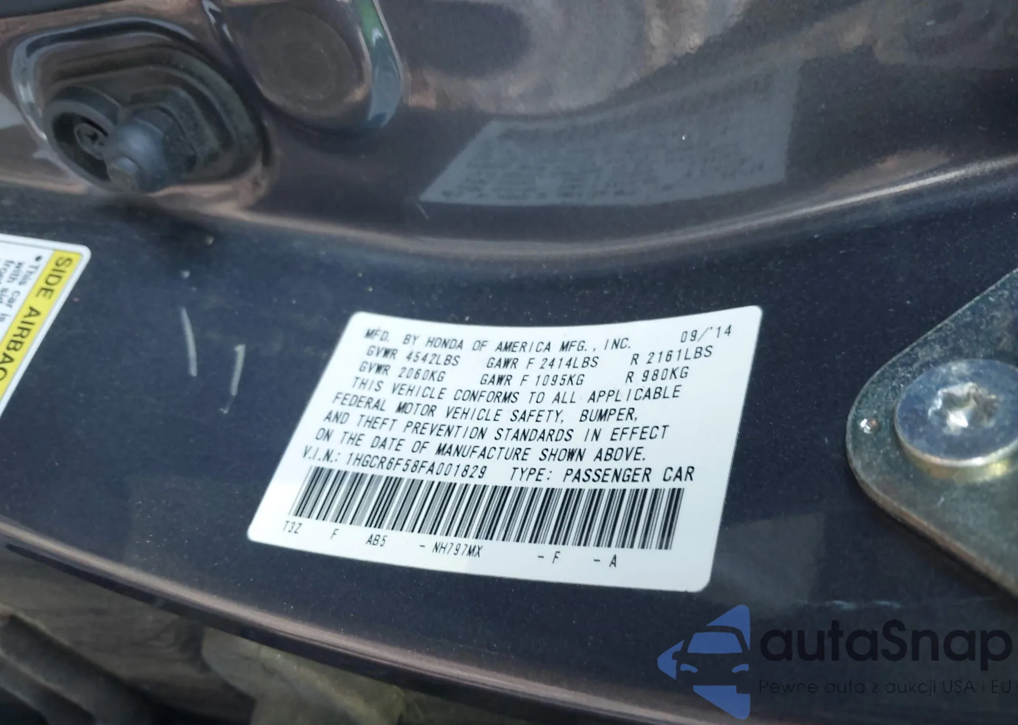 • VIN 1HGCR6F58FA001829