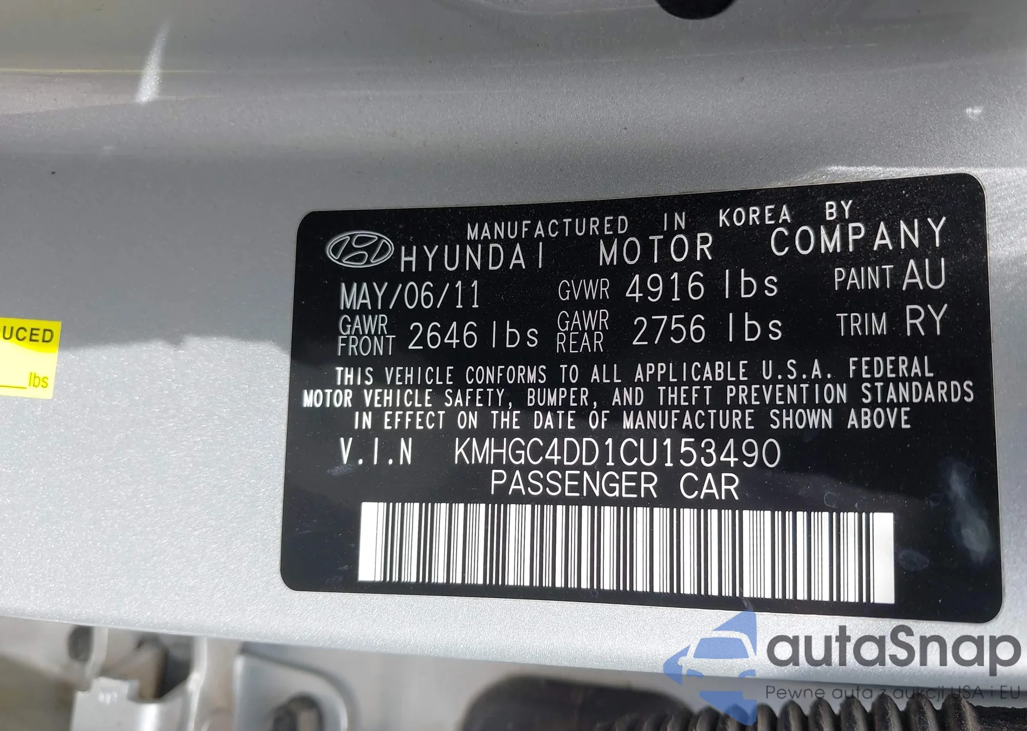LOT: 42144974 VIN: KMHGC4DD1CU153490